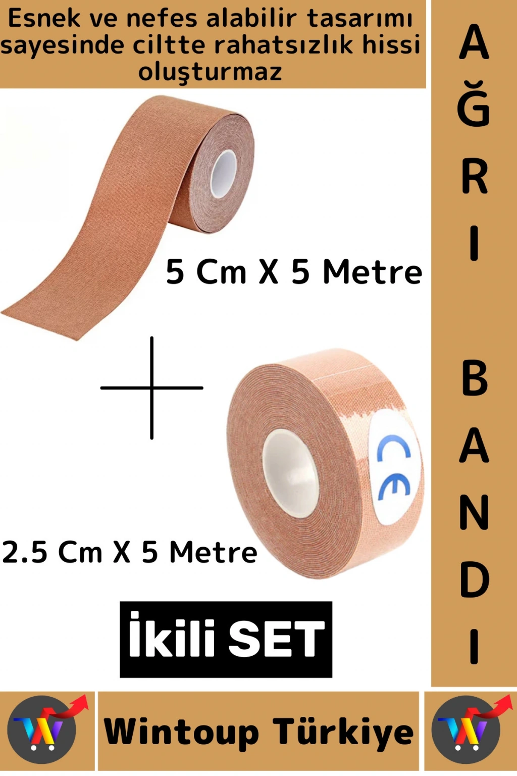 #AğrıBandı Hızlı Etki Bel Bacak Kol Boyun Sırt Omuz Kalça Kas Spor Ağrı Bandı 5 Metre Ten İkili Set