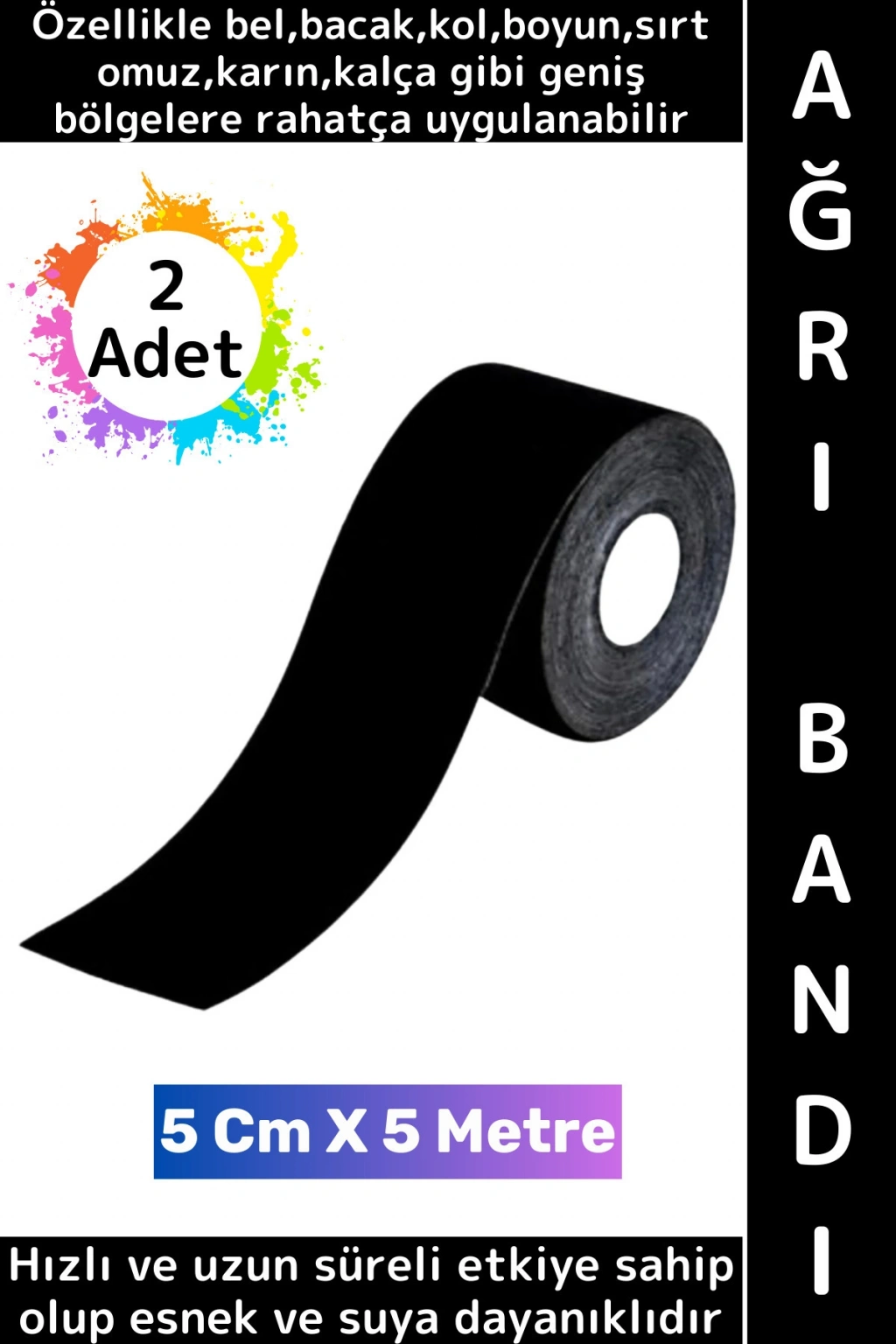 #AğrıBandı Hızlı Etki Bel Bacak Kol Boyun Sırt Omuz Kalça Kas Spor Ağrı Bandı 5 Metre Ten İkili Set