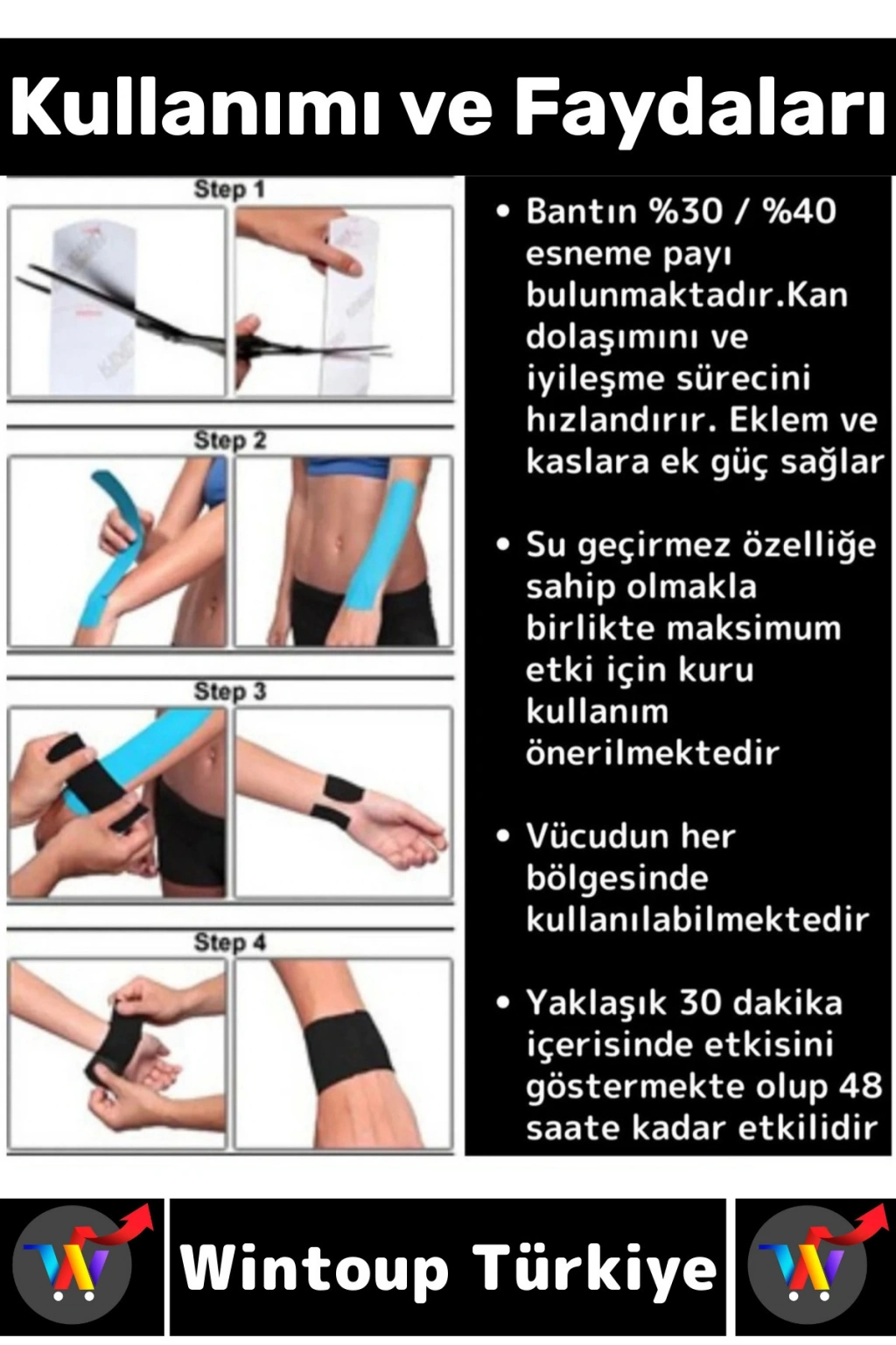 Özel Hızlı Etkili Büyük Boy Kas Eklem Bel Bacak Kol Boyun Sırt Omuz Karın Kalça Ağrı Bandı Siyah