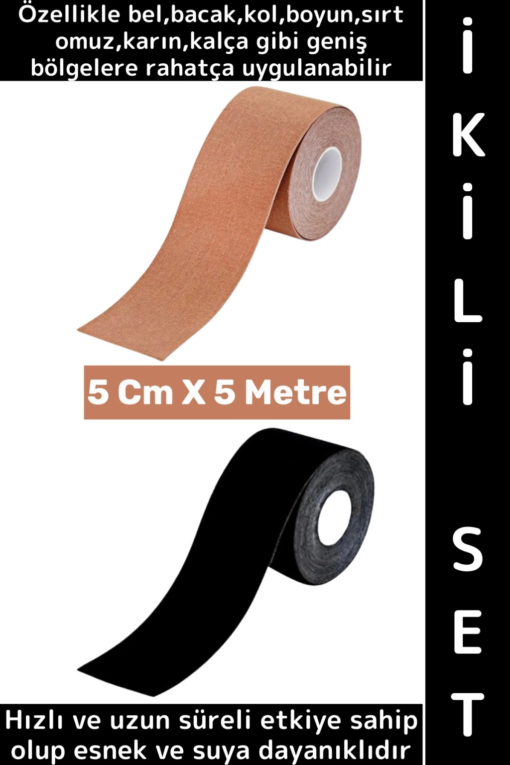 #AğrıBandı Hızlı Etki Bel Bacak Kol Boyun Sırt Omuz Kalça Kas Spor Ağrı Bandı 5 Metre Ten İkili Set