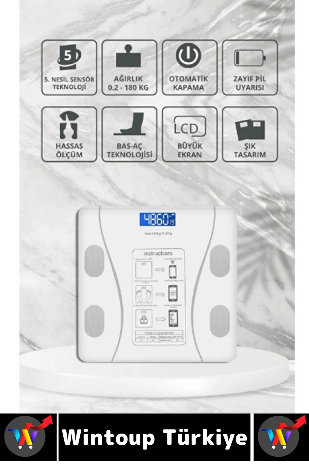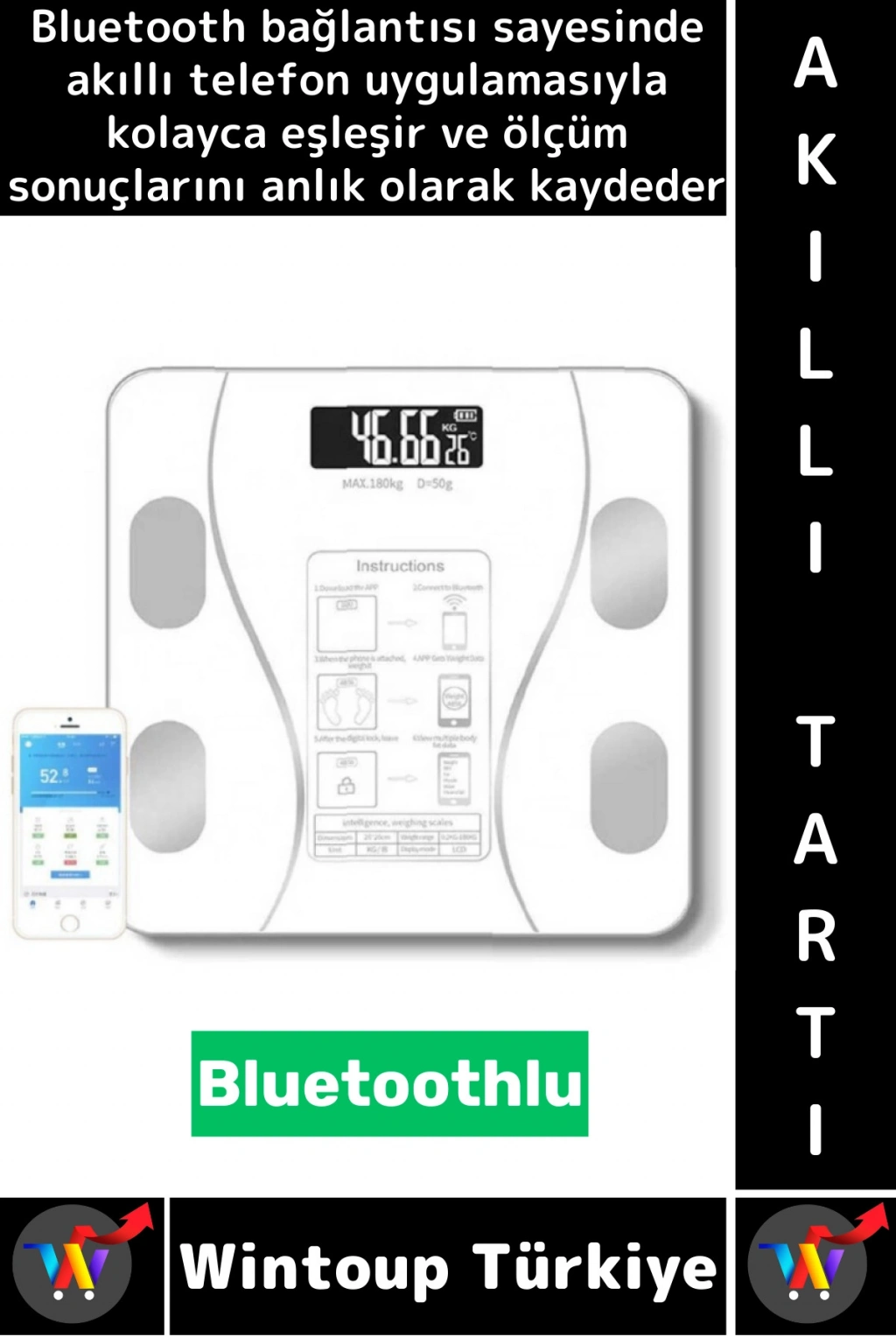 1 adet Beyaz Renk Bluetooth Özellikli Akıllı Tartı