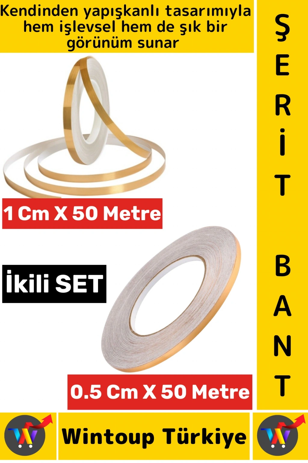 1 Adet 0.5 Cm X 50 Metre - 1 Adet 1 Cm X 50 Metre İkili SET