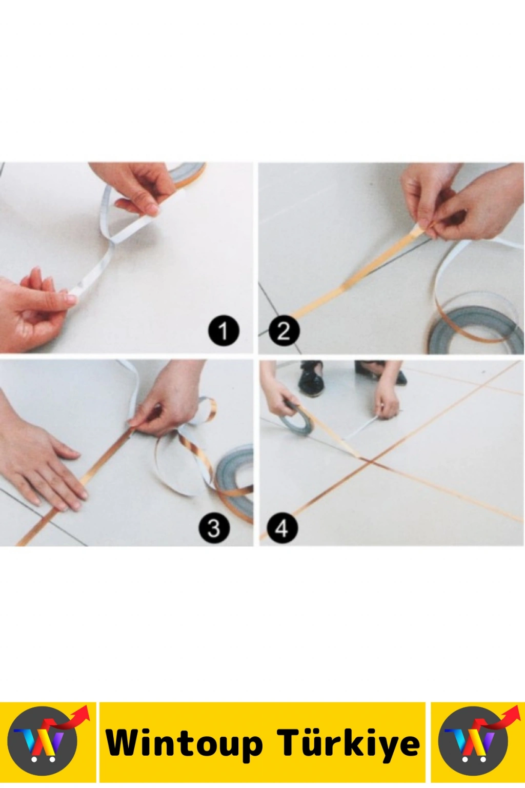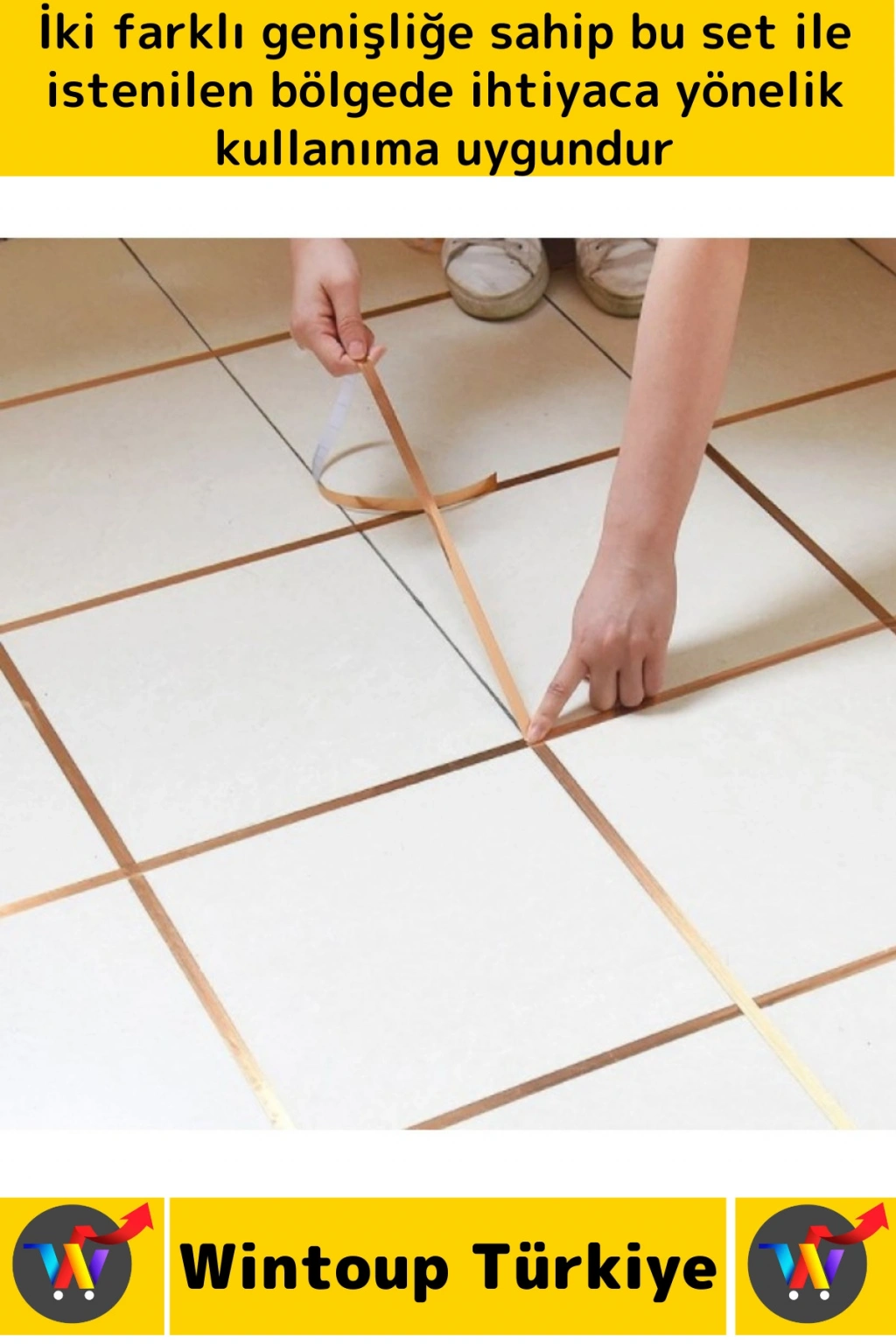 #Bant Kendinden Yapışkanlı Güçlü Su Geçirmez Karo Zemin Fayans Arası Şerit Derz Bant Goldi 2'li Set