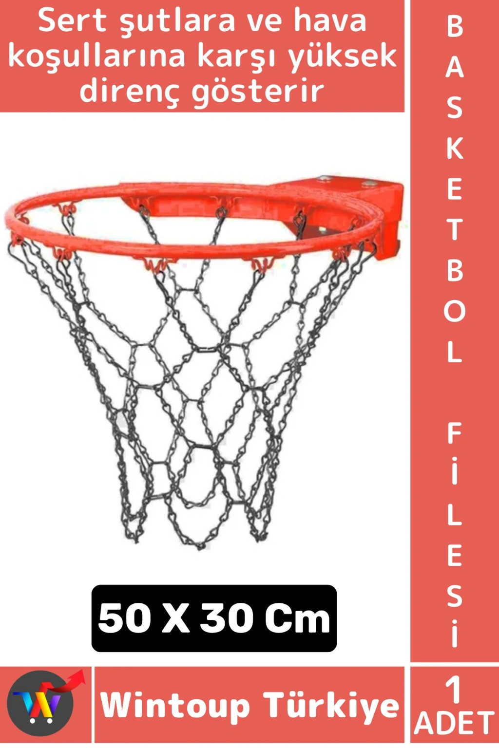 Basketbol potaları için özel olarak tasarlanmışdemir zincir file, dayanıklı yapısı sayesinde uzun ömürlü kullanım sunar.Dış saha, okul bahçeleri, parklar ve spor salonlarıiçin idealdir. Sert şutlara ve hava koşullarına karşı yüksek direnç gösterir.