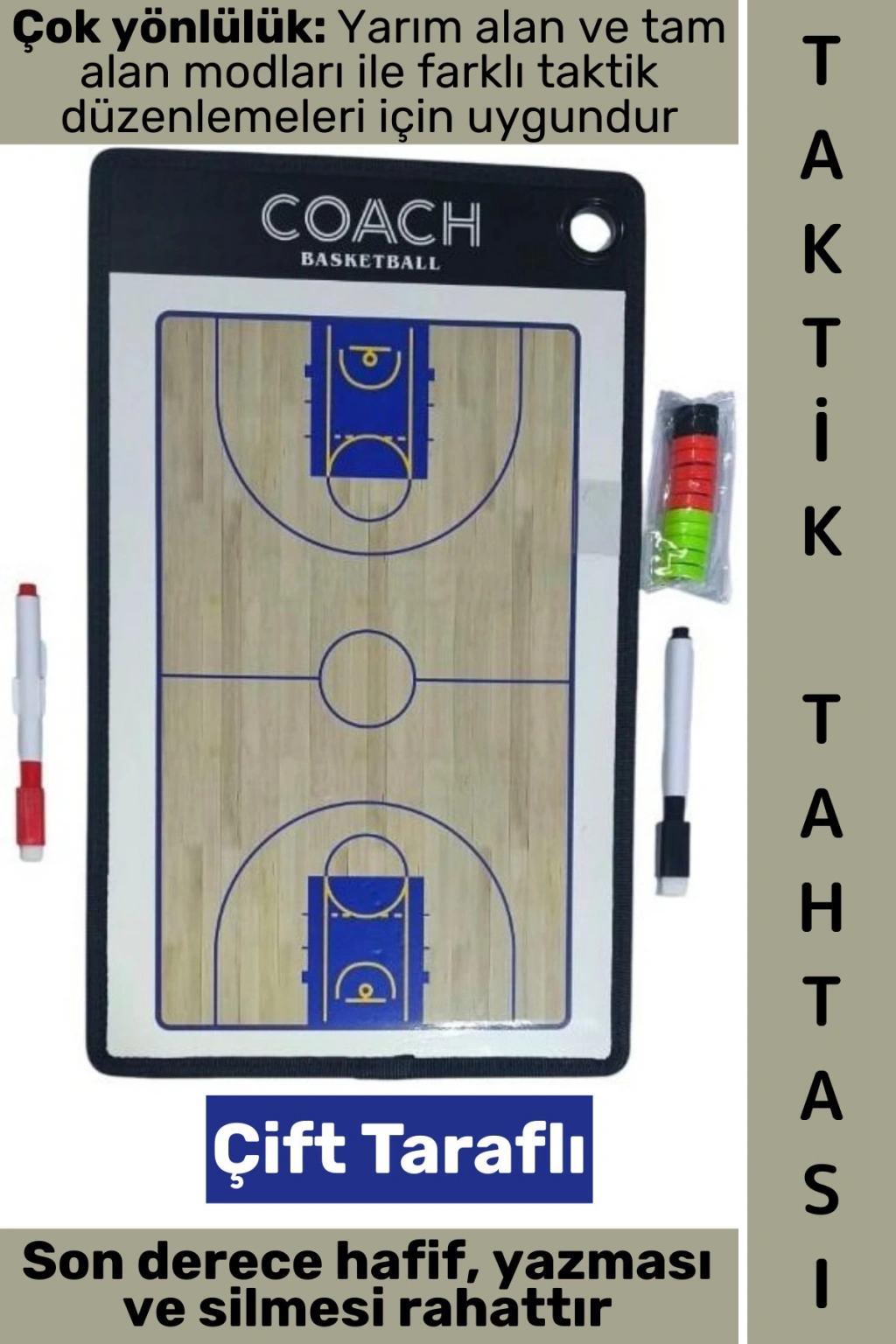 • Manyetik işaretleyici parçaları, antrenörlerin takım oluşumlarını kolayca işaretlemesini sağlar.