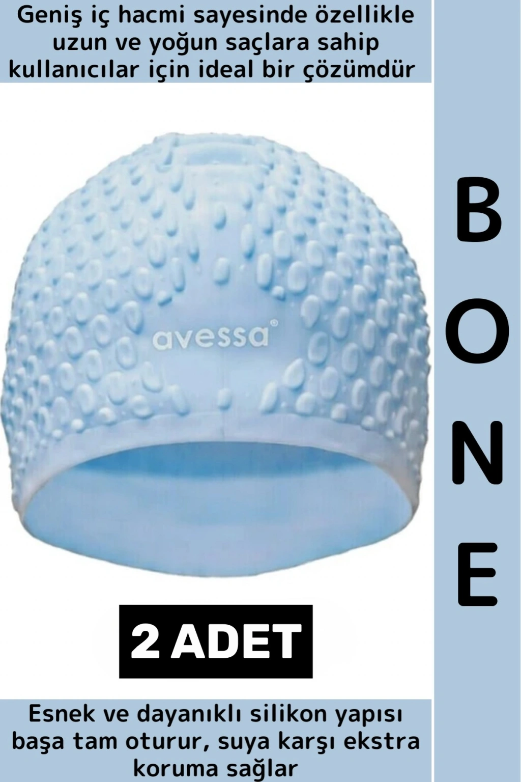 #Bone Esnek Yumuşak Silikon Havuz Deniz Yüzme Kulağa Su Geçirmez Büyük Beden Saç Bonesi 2 Adet