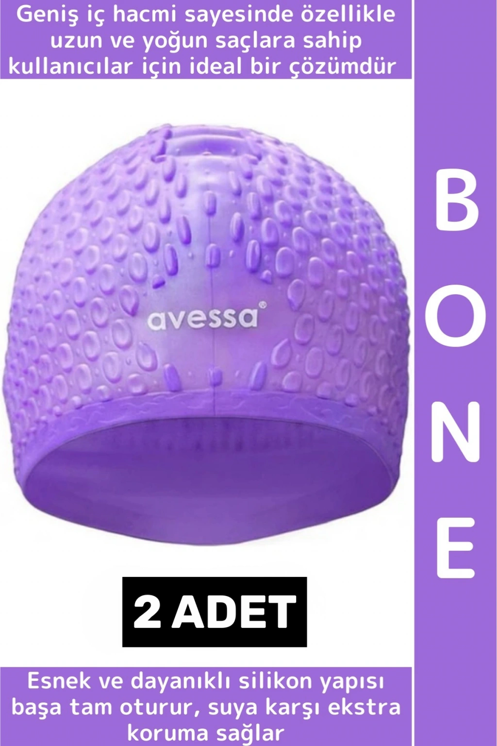 #Bone Esnek Yumuşak Silikon Havuz Deniz Yüzme Kulağa Su Geçirmez Büyük Beden Saç Bonesi 2 Adet