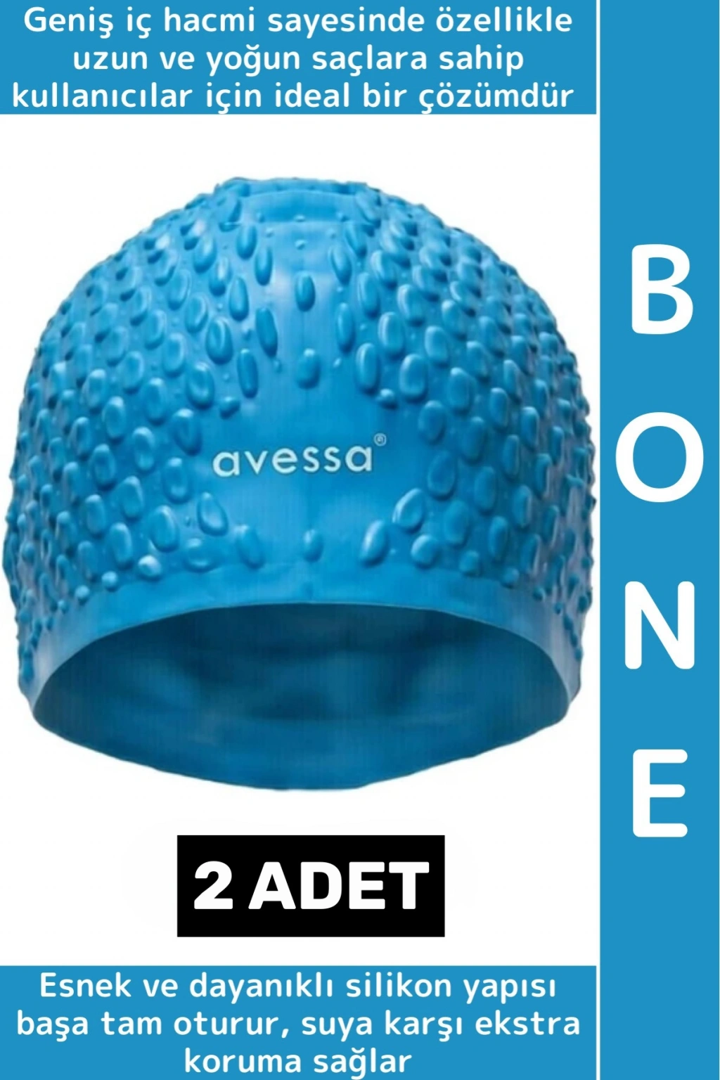 Yüzme antrenmanları ve düzenli havuz kullanımı için tasarlananBüyük Silikon Bone, geniş iç hacmi sayesinde özellikle uzun ve yoğun saçlara sahip kullanıcılar için ideal bir çözümdür. Esnek ve dayanıklı silikon yapısı başa tam oturur, suya karşı ekstra koruma sağlar.