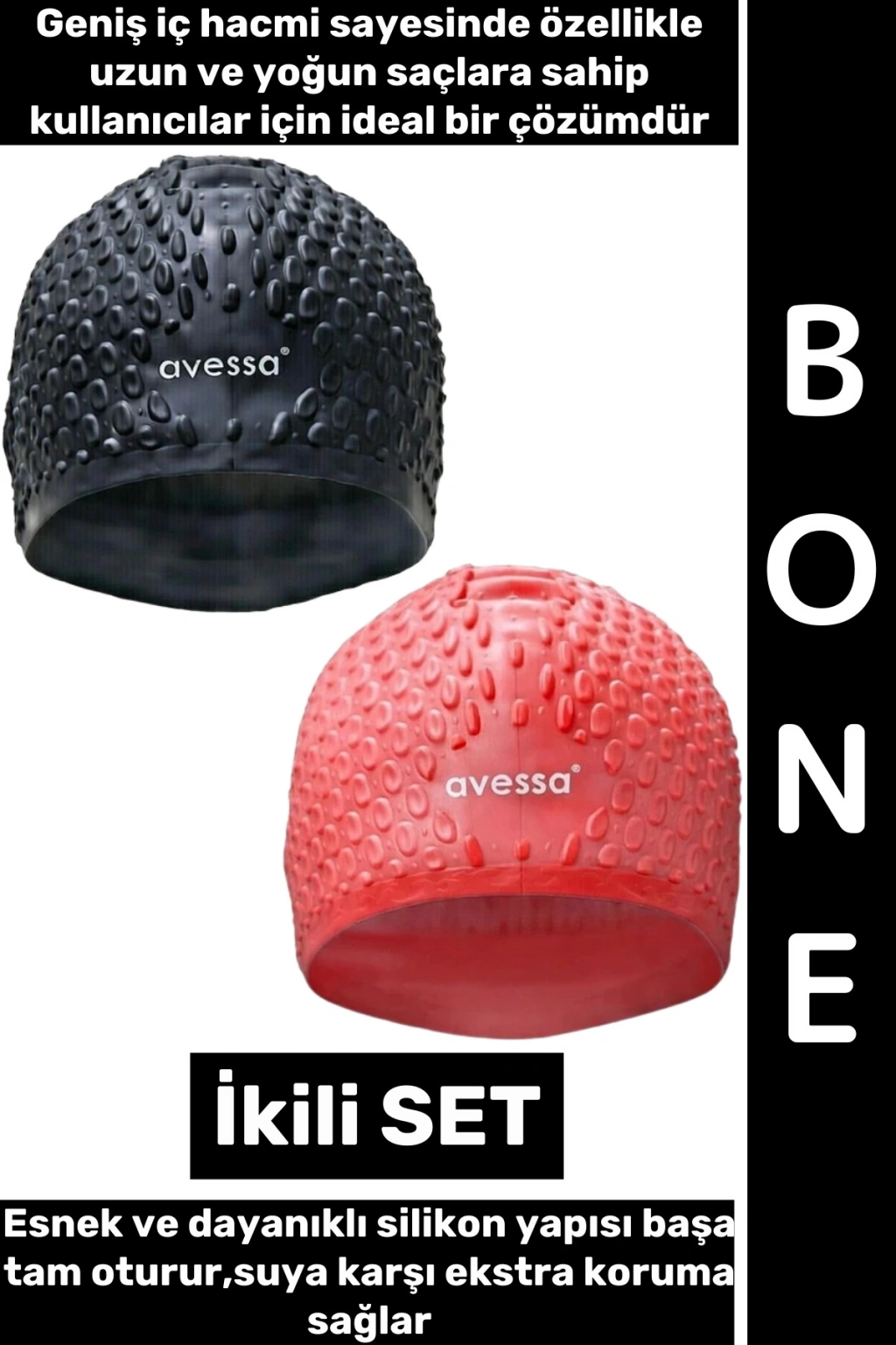 #Bone Esnek Yumuşak Silikon Havuz Deniz Yüzme Kulağa Su Geçirmez Büyük Beden Saç Bonesi İkili SET