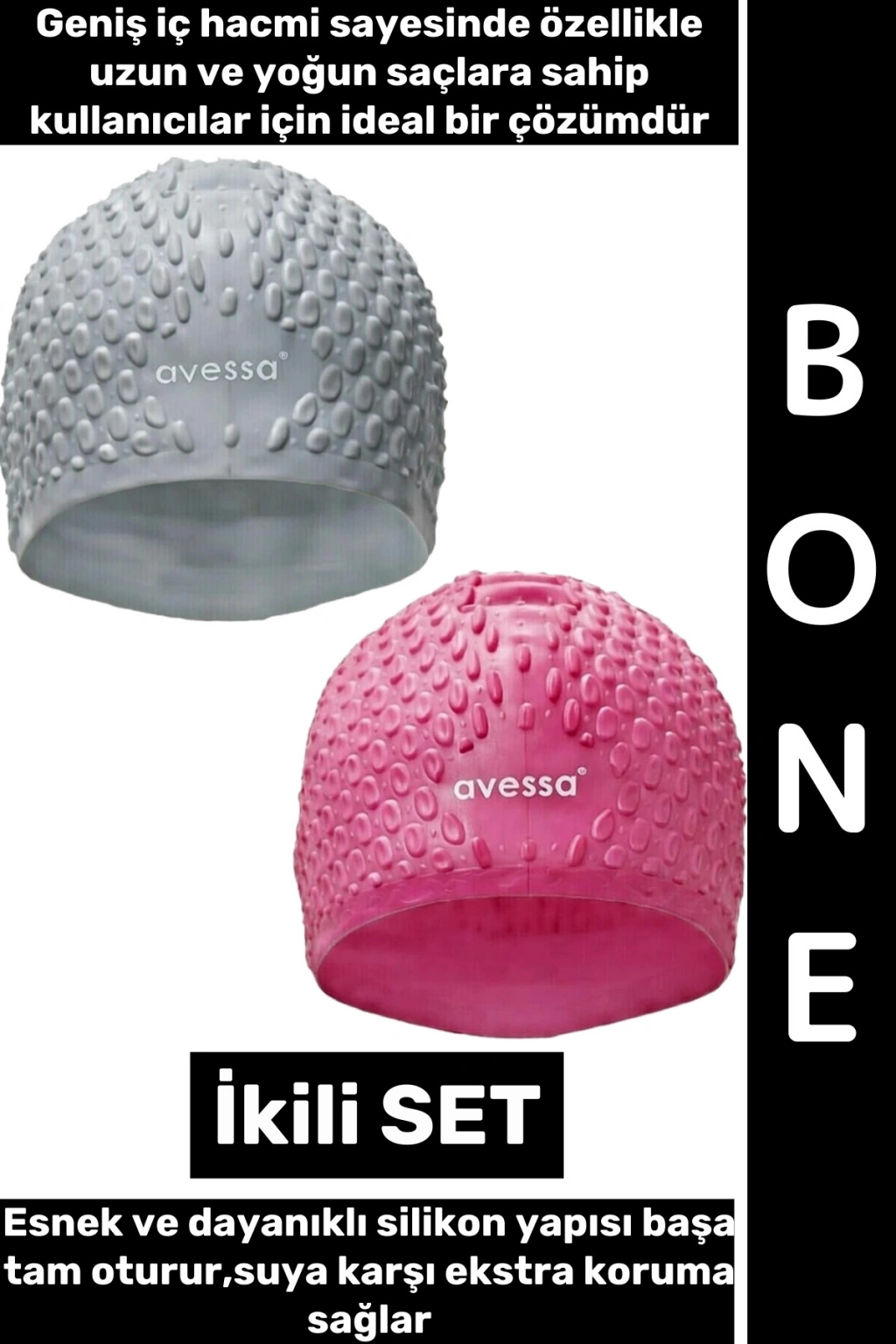 #Bone Esnek Yumuşak Silikon Havuz Deniz Yüzme Kulağa Su Geçirmez Büyük Beden Saç Bonesi İkili SET