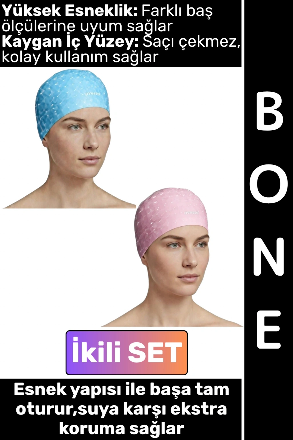 #Bone Konforlu Esnek Yumuşak Havuz Deniz Yüzme Kaygan İç Yüzey Şık Su Geçirmez Saç Bonesi İkili SET