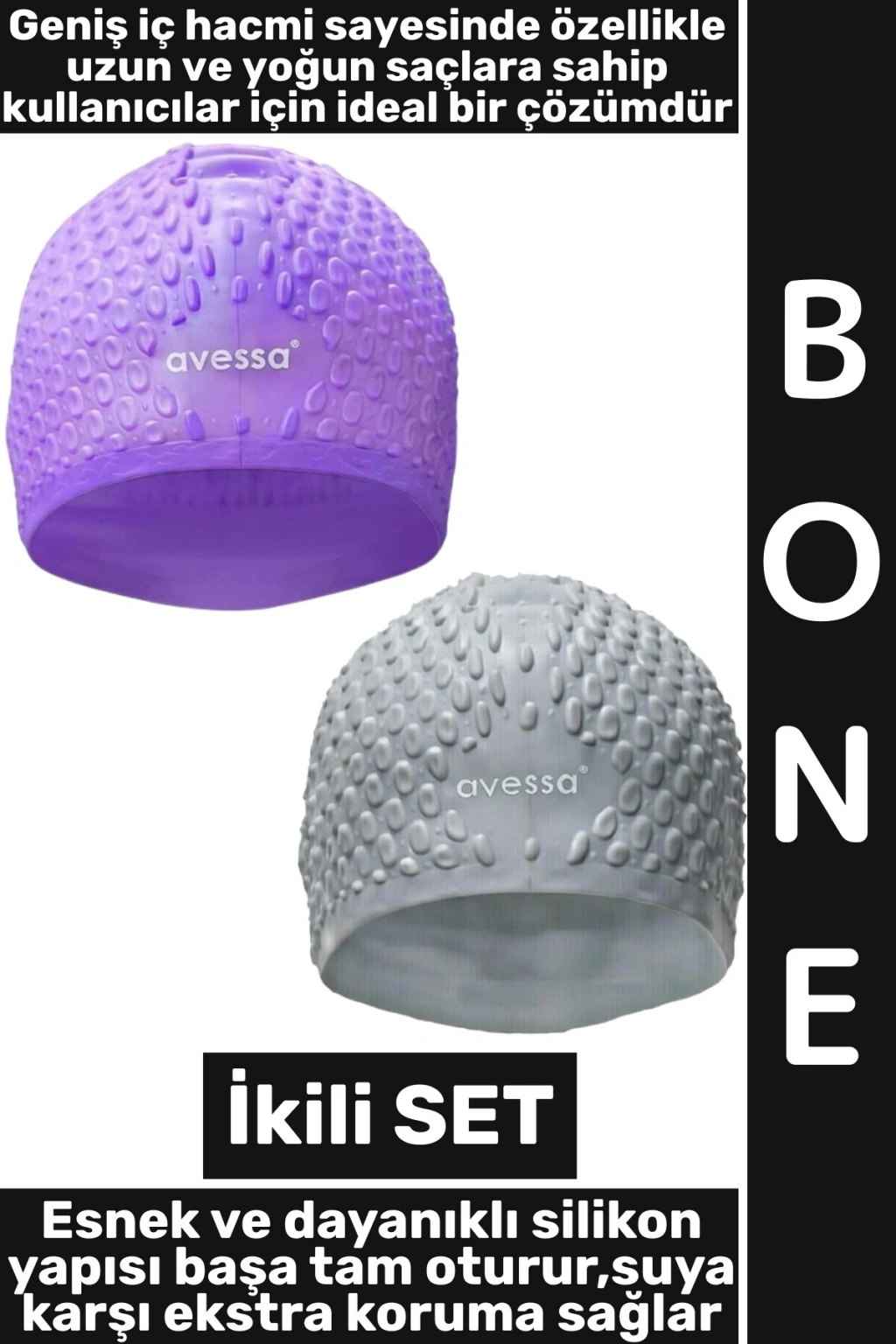 #Bone Yumuşak Elastik Silikon Havuz Deniz Yüzme Kulağa Su Kaçırmaz Büyük Beden Saç Bonesi İkili SET