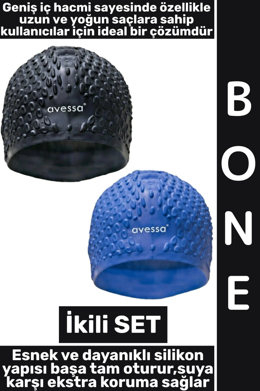 #Bone Yumuşak Elastik Silikon Havuz Deniz Yüzme Kulağa Su Kaçırmaz Büyük Beden Saç Bonesi İkili SET
