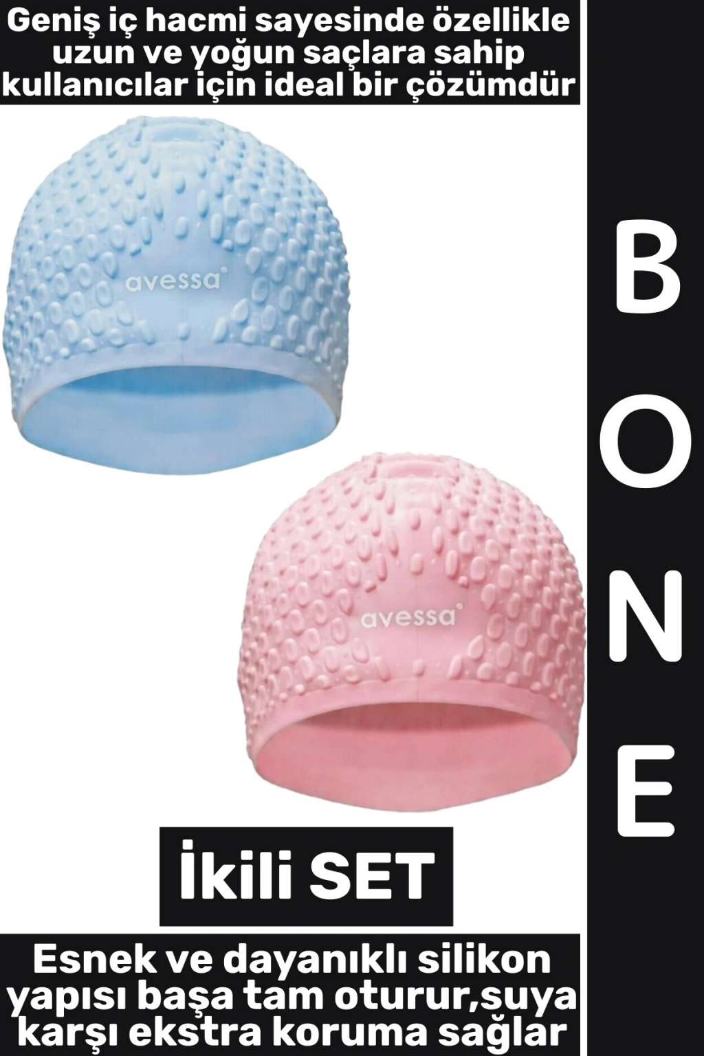 #Bone Yumuşak Elastik Silikon Havuz Deniz Yüzme Kulağa Su Kaçırmaz Büyük Beden Saç Bonesi İkili SET