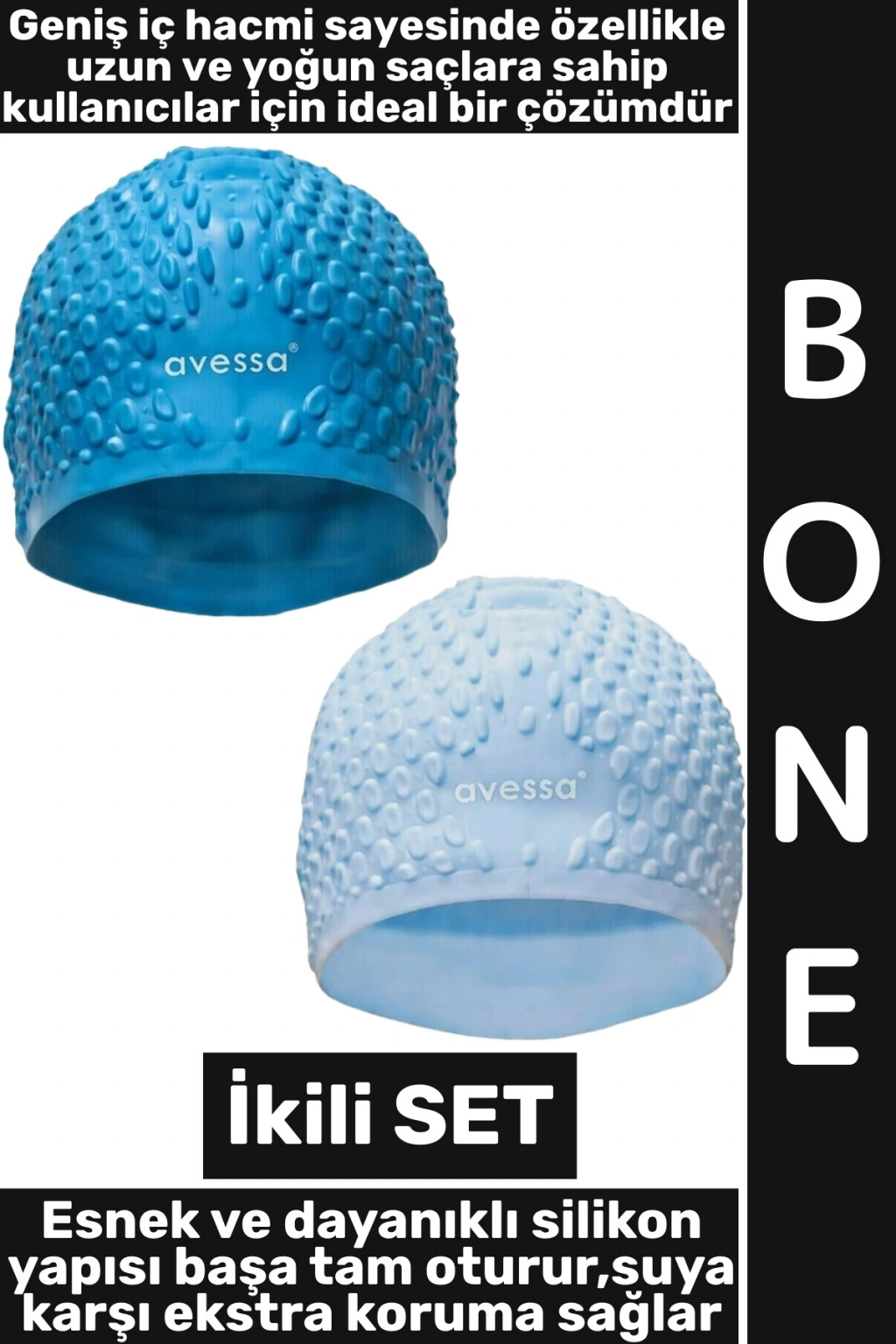 #Bone Yumuşak Havuz Deniz Yüzme Kulağa Su Kaçırmaz Elastik Silikon Büyük Beden Saç Bonesi İkili SET