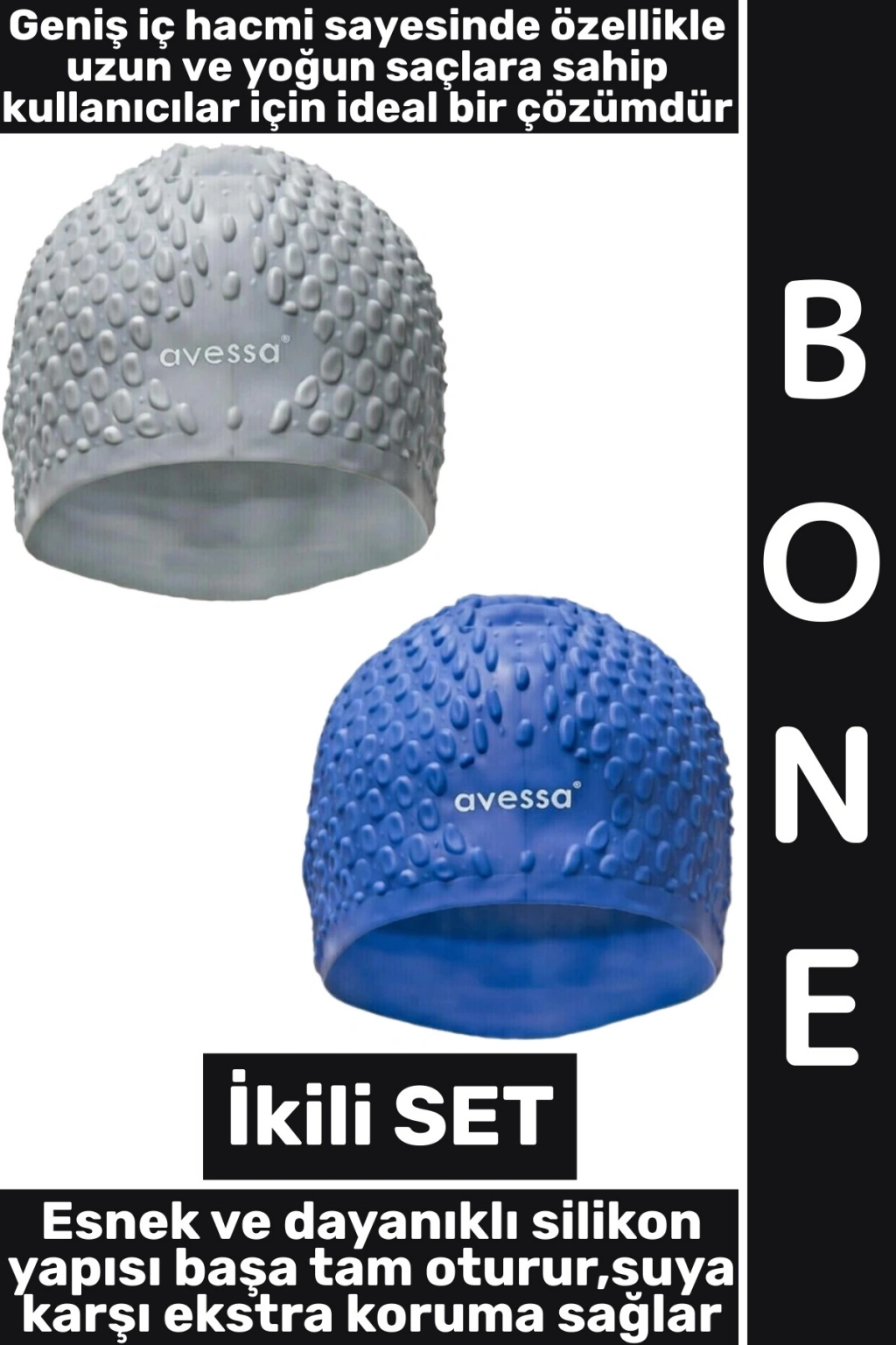 #Bone Yumuşak Havuz Deniz Yüzme Kulağa Su Kaçırmaz Elastik Silikon Büyük Beden Saç Bonesi İkili SET