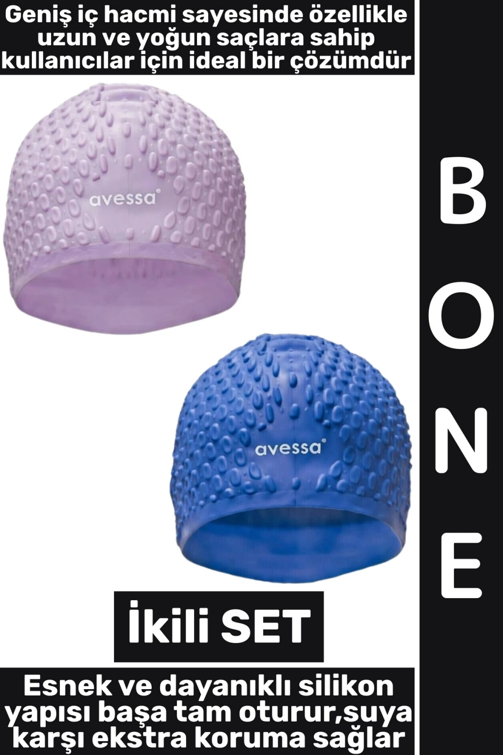 #Bone Yumuşak Havuz Deniz Yüzme Kulağa Su Kaçırmaz Elastik Silikon Büyük Beden Saç Bonesi İkili SET