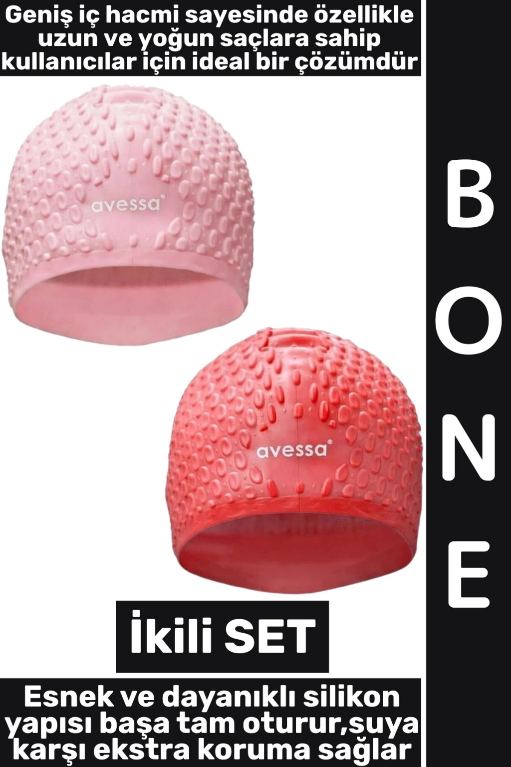 #Bone Yumuşak Havuz Deniz Yüzme Kulağa Su Kaçırmaz Elastik Silikon Büyük Beden Saç Bonesi İkili SET