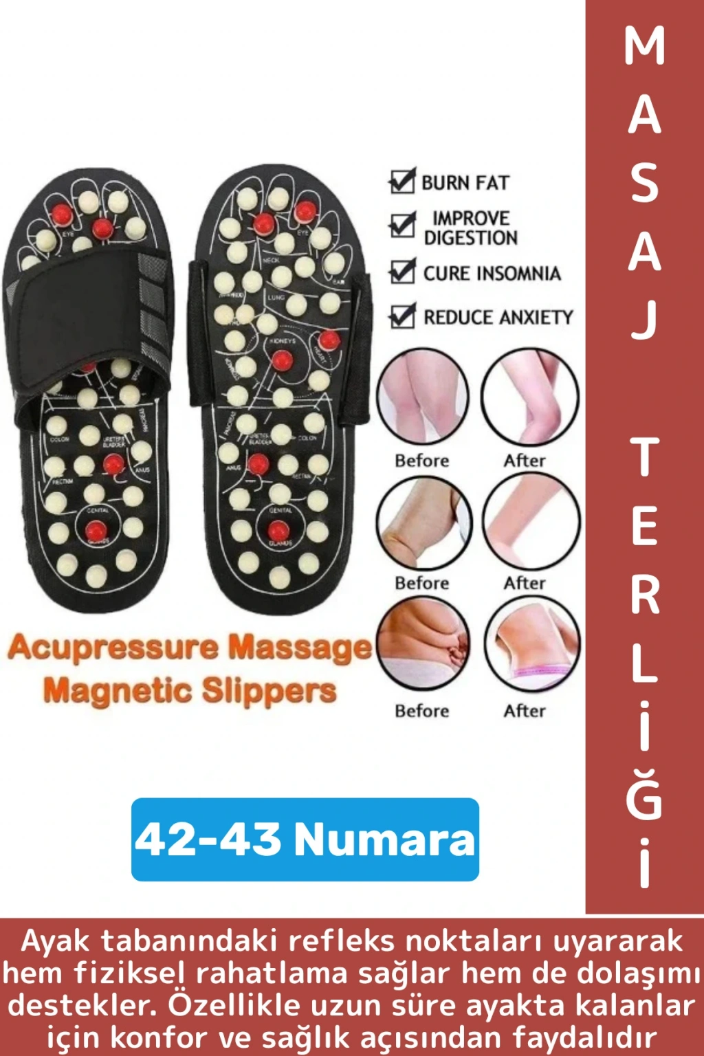 Masaj terliği, ayak tabanındaki refleks noktaları uyararak hem fiziksel rahatlama sağlar hem de dolaşımı destekler. Özellikle uzun süre ayakta kalanlar için konfor ve sağlık açısından faydalıdır.