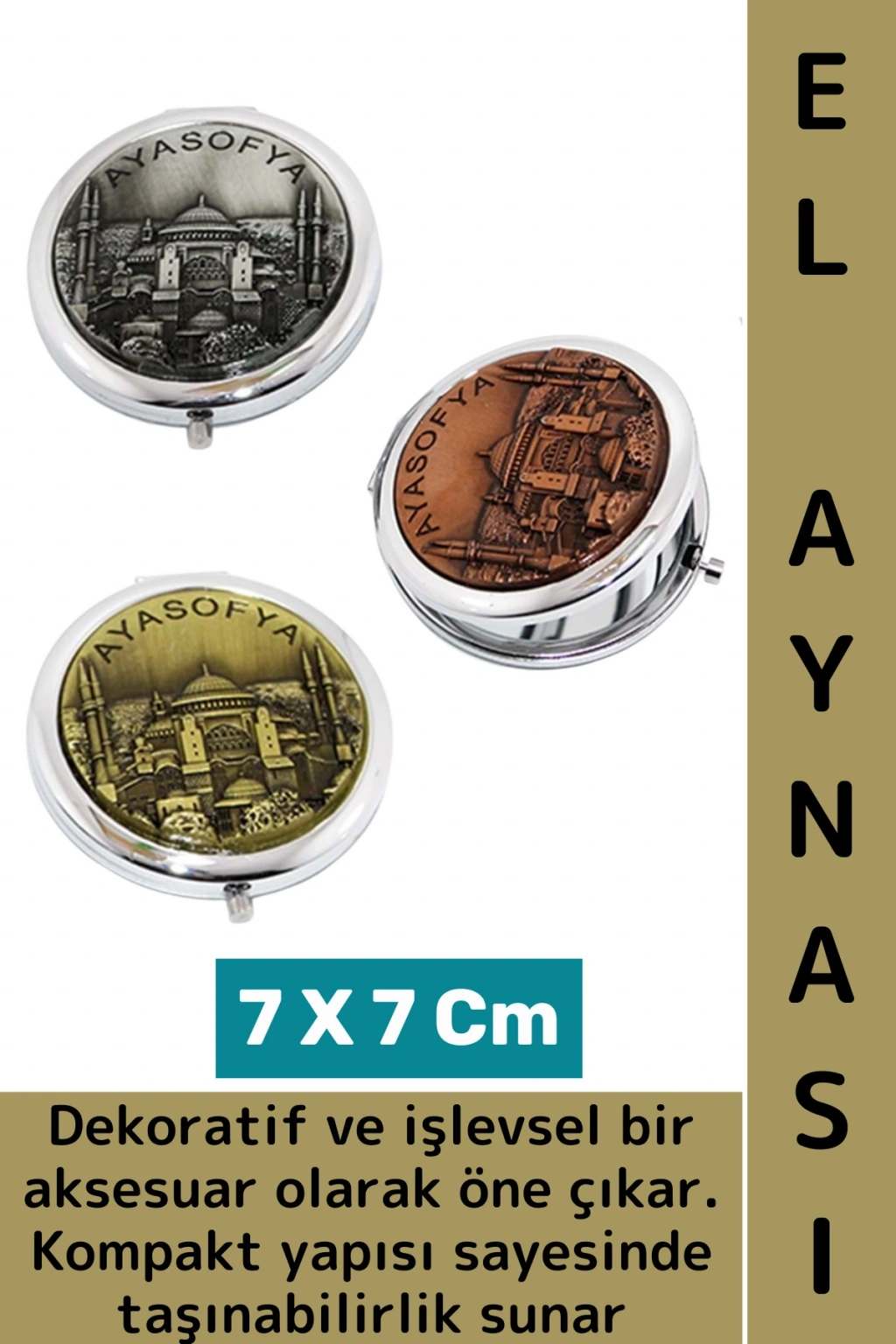 Hem dekoratif hem de işlevsel bir aksesuar olarak öne çıkar. Kompakt yapısı sayesinde taşınabilirlik sunarken, çok şık İstanbul Ayasofya motifi ile süslenmiştir.
