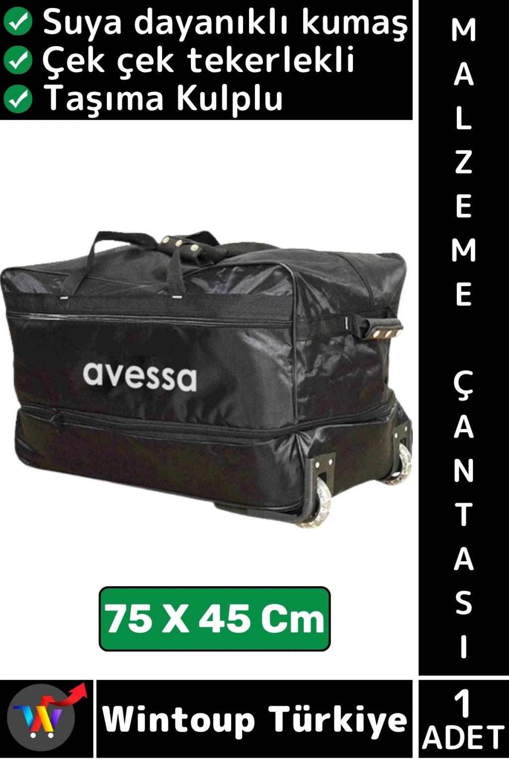 #Çanta Suya Dayanıklı Kumaş Spor Okul Futbol Antrenman Çek Çek Tekerlekli Malzeme Çantası 75 X 45 Cm