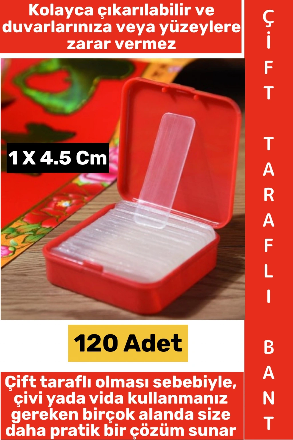 Çift taraflı olması sebebiyle, çivi yada vida kullanmanız gereken birçok alanda size daha pratik bir çözüm sunar.