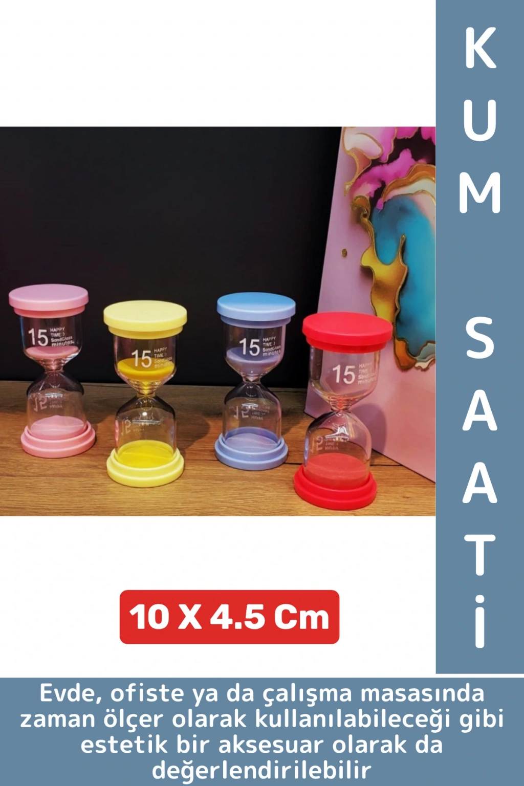 15 dakikalık kum saati, kaliteli cam ve plastik malzemeden üretilmiştir. Zaman ölçümü için pratik bir yardımcı olmasının yanı sıra masaüstünde dekoratif bir obje olarak da kullanılabilir. Modern tasarımı ile çalışma odası, ofis veya ev dekorasyonuna estetik bir dokunuş katar.