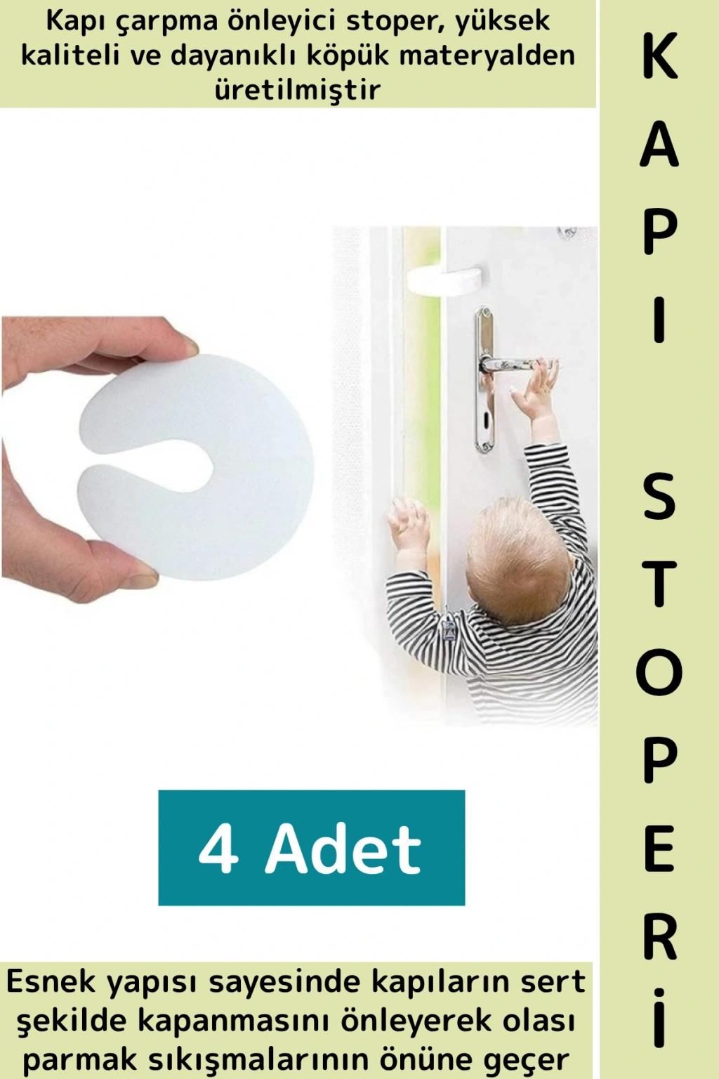 Kapı çarpma önleyici stoper, yüksek kaliteli ve dayanıklı köpük materyalden üretilmiştir. Esnek yapısı sayesinde kapıların sert şekilde kapanmasını önleyerek olası parmak sıkışmalarının önüne geçer. Dolap, çekmece, kapı gibi çeşitli yüzeylerde kullanılabilir.