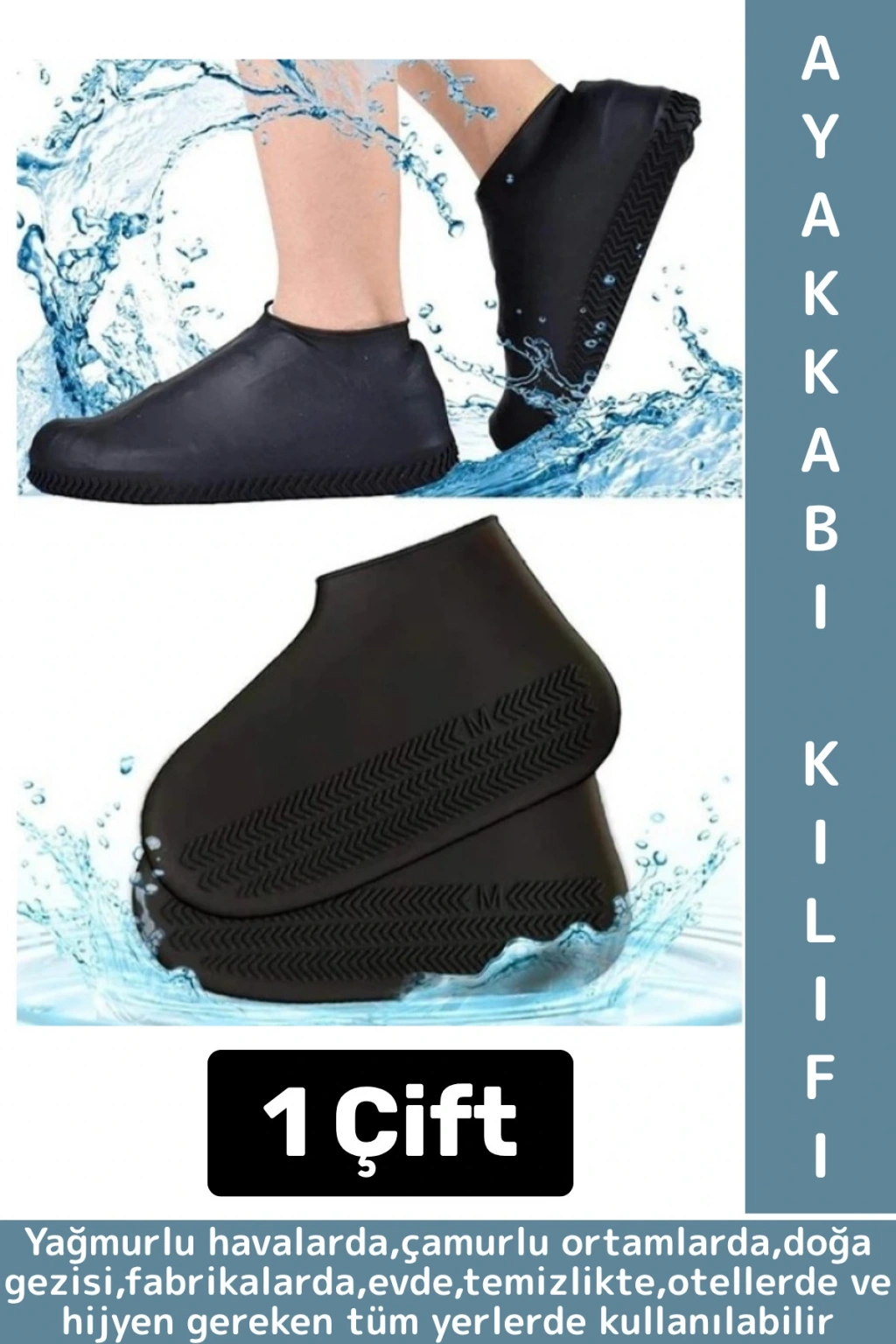 Yağmurlu havalarda Çamurlu ortamlar da Doğa gezisi Fabrikalarda Evde temizlikte Otellerde Hijyen gereken tüm yerler de kullanılabilir.