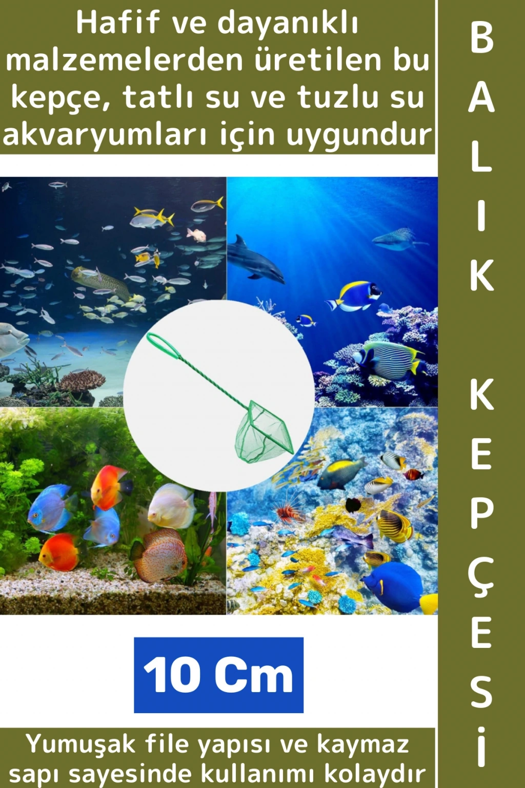 Akvaryum Balık Yakalama Kepçesi, balıklarınıza zarar vermeden güvenli bir şekilde yakalamanız için özel olarak tasarlanmıştır. Yumuşak file yapısı ve kaymaz sapı sayesinde kullanımı kolaydır. Hafif ve dayanıklı malzemelerden üretilen bu kepçe, tatlı su ve tuzlu su akvaryumları için uygundur. Mikro teknoloji ile örülmüş kumaş özellikli.