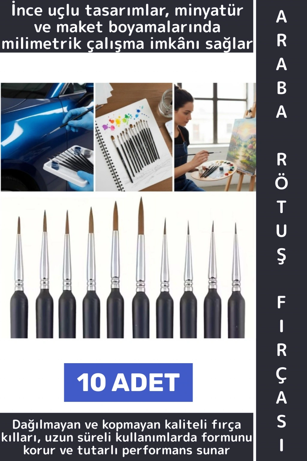 10 ADET HOBİ VE ARABA İNCE DETAY RÖTUŞ FIRÇA SETİ