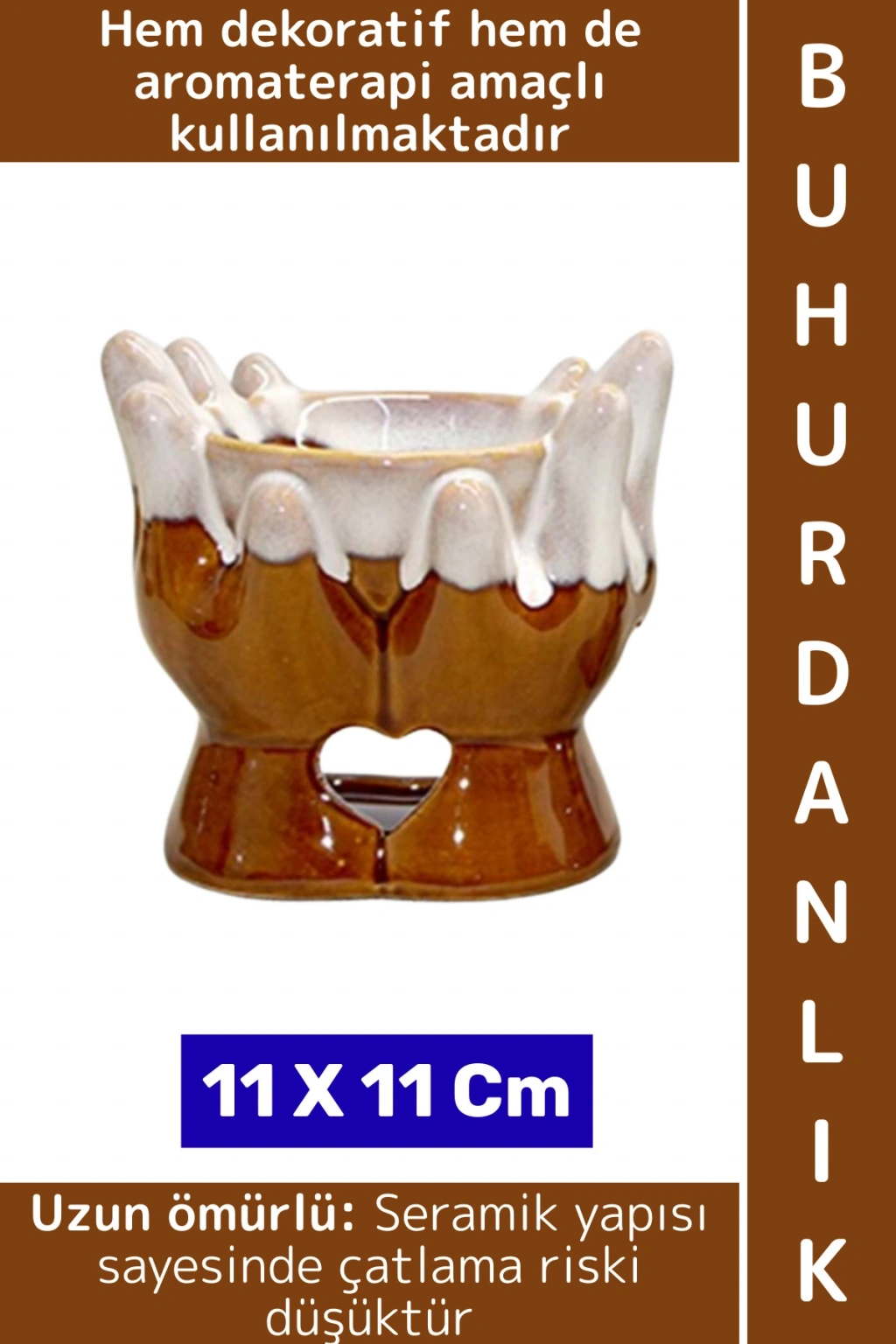 Dekoratif Hediye Aromaterapi Meditasyon Tütsülük Çok Şık Seramik El Tasarımlı Buhurdanlık 11 X 11 Cm