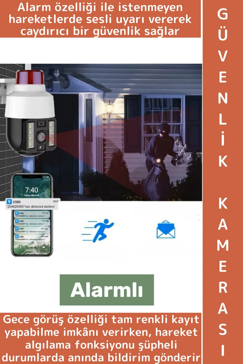 ALARMLI DIŞ MEKAN GÜVENLİK KAMERASI