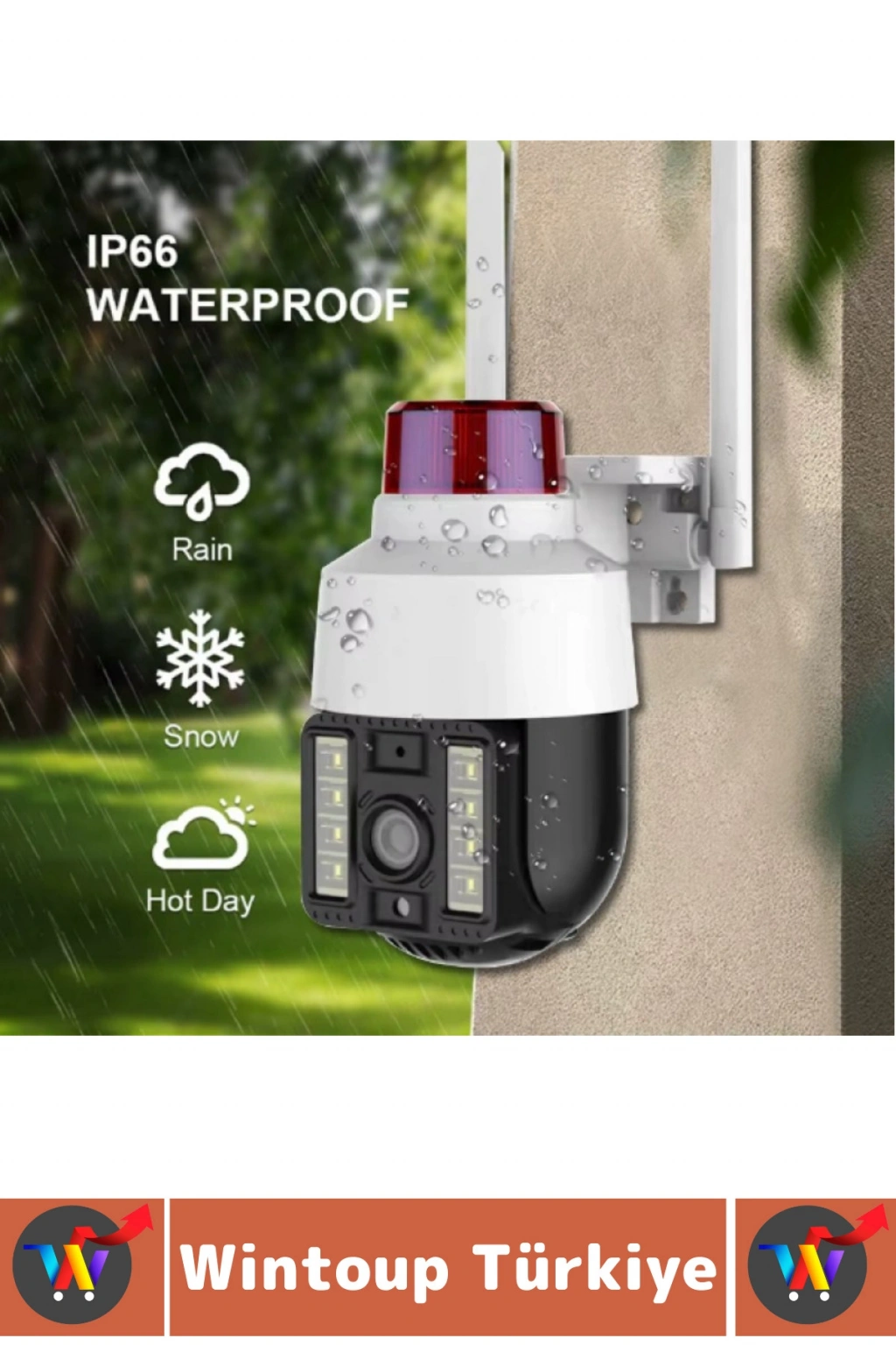 IP66 su geçirmezlik sertifikası sayesinde yağmur, kar ve güneş altında dayanıklı kullanım sağlar. H.265 sıkıştırma teknolojisi ile daha düşük veri kullanımı ve yüksek kalite bir arada sunulur. TF kart ve bulut depolama desteği ile kayıtlar güvenle saklanabilir.