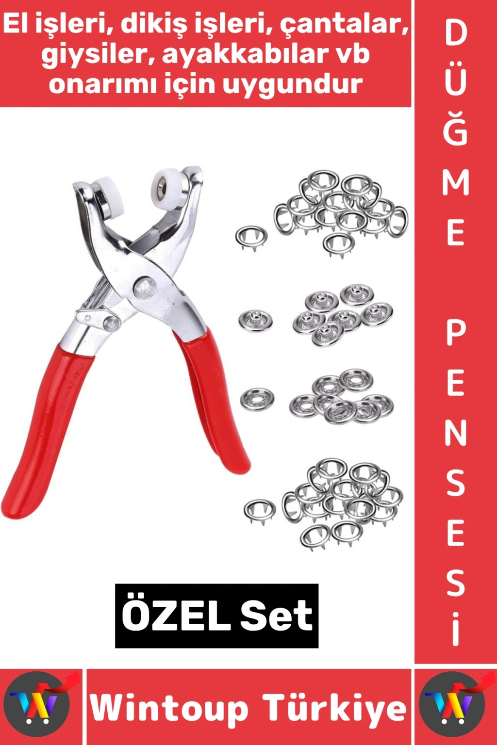Pense ve çıtçıtlı sabitleyiciler gibi aletlerle takılır.