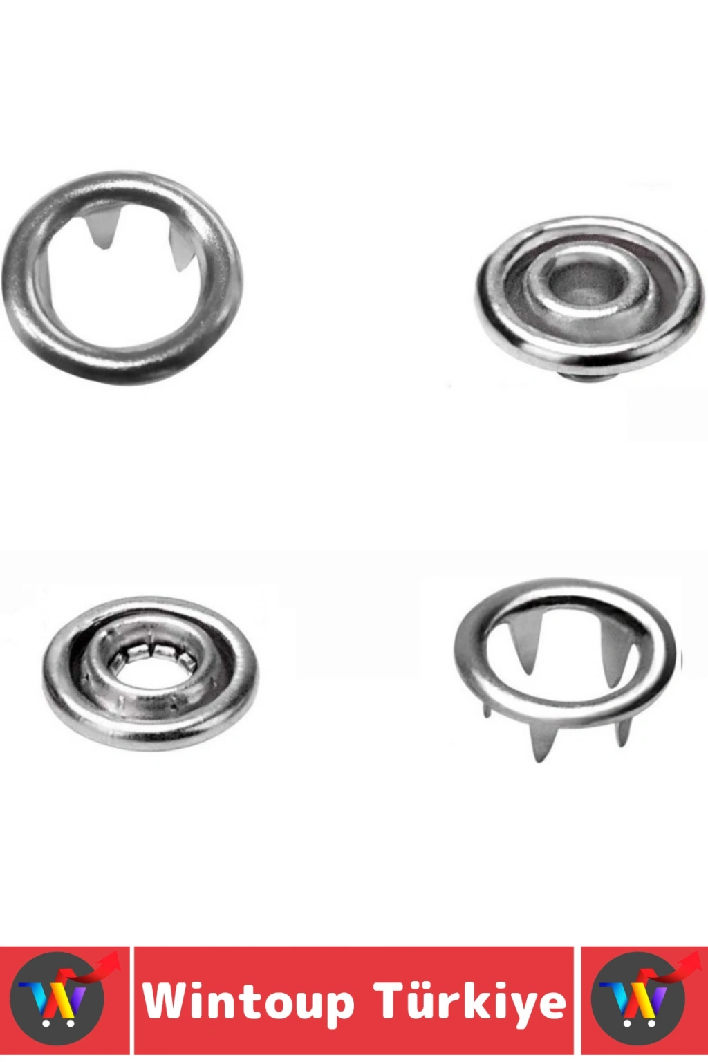 Çıtçıt düğmeler 4 parçadan oluşur – 2 x kapak, 1 x taban ve 1 x perçin