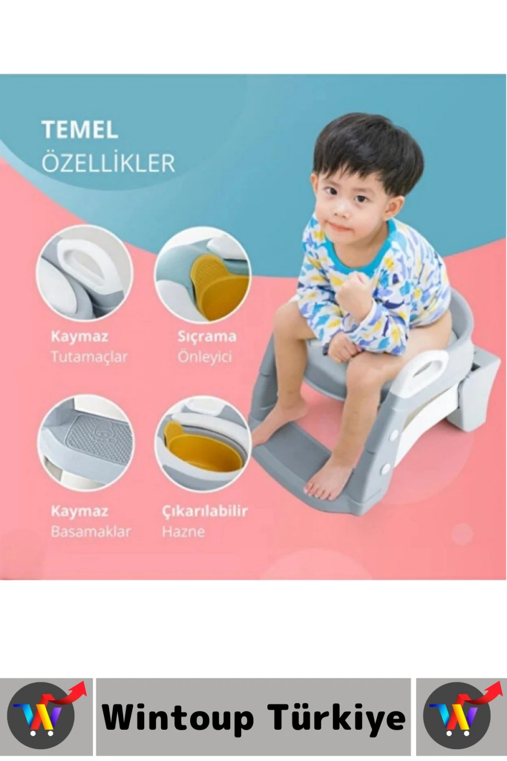Sıçrama önleyici ön tasarım, tuvalet eğitimi sırasında hijyenin korunmasına yardımcı olurken, çıkarılabilir haznesi temizlik ve bakım kolaylığı sağlar. Ayarlanabilir merdiven yapısı farklı klozet yüksekliklerine uyum sağlayacak şekilde tasarlanmıştır ve çoğu standart klozet modeliyle rahatlıkla kullanılabilir. Dayanıklı ve kaliteli plastik malzemeden üretilmiş olan ürün, hafif yapısı sayesinde kolay taşınabilir ve kullanılmadığında pratik şekilde kaldırılabilir. Çocukların tuvaleti kendi başlarına kullanma alışkanlığı kazanmasını destekleyen bu aparat, ebeveynler için de süreci daha stressiz ve düzenli hale getirir.