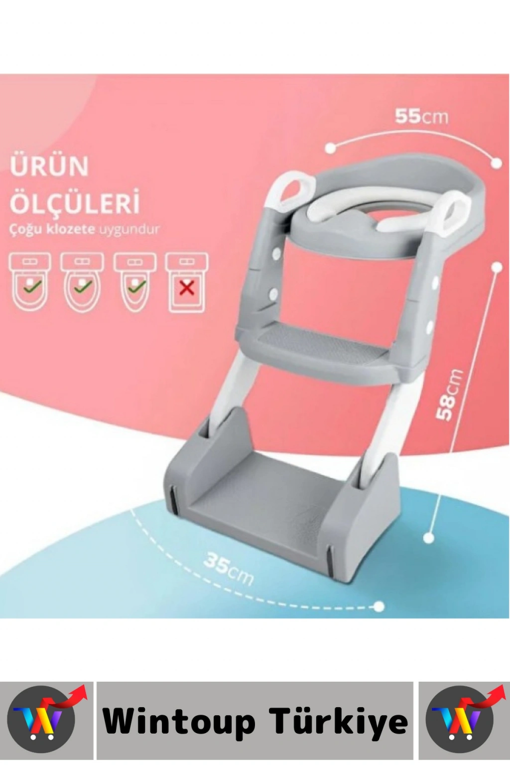 Eğitici Çocuk Özgüven Kazanımı Konforlu Kaymaz Ayarlanabilir Merdiven Klozet Tuvalet Eğitimi Aparatı