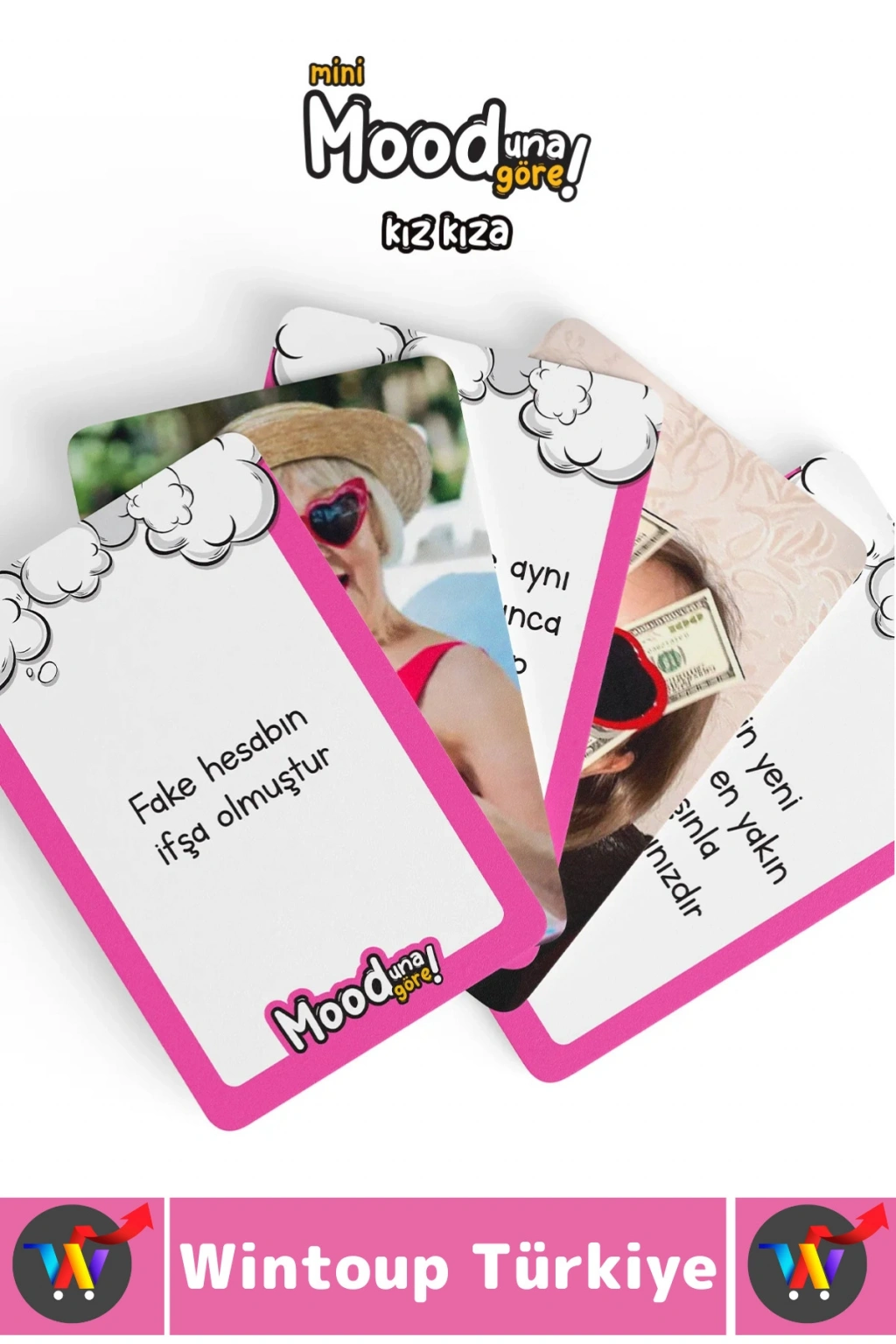Mooduna Göre – Kız Kıza, günlük hayatın absürt durumlarını eğlenceli ve yaratıcı kartlarla buluşturan, kahkaha garantili bir parti oyunudur!