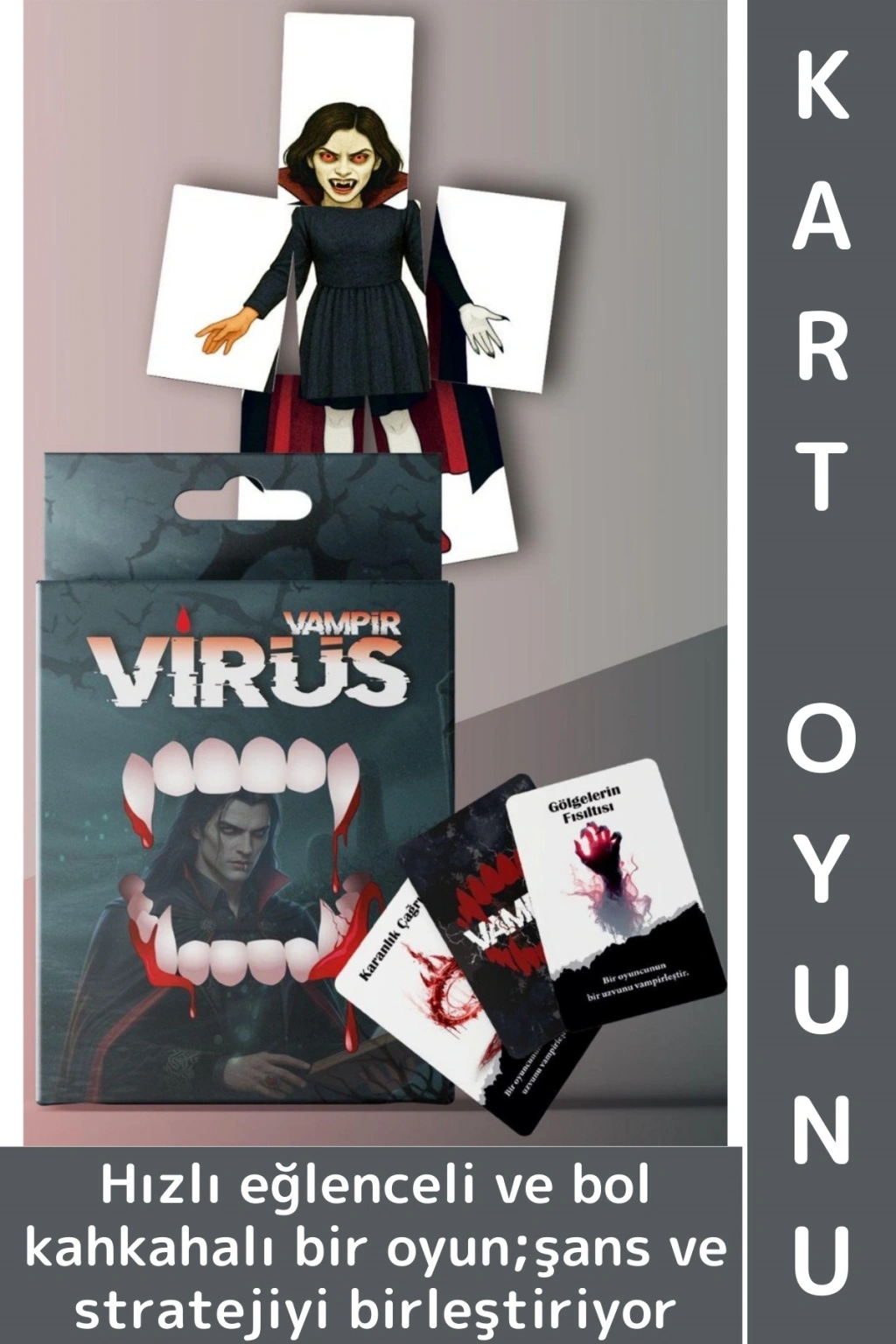 Vampir Virüs Kart Oyunu ile Tarafını Seç! Klasik kart oyunlarına heyecan verici bir soluk getiren Vampir Virüs, sizi strateji ve gizem dolu bir dünyaya davet ediyor. Arkadaşlarınızla veya ailenizle oynarken hem eğlenecek hem de hayatta kalmak için en doğru hamleleri yapmaya çalışacaksınız. "Gölgelerin Fısıltısı" ve "Karanlık Çağrı" gibi aksiyon kartlarıyla rakiplerinizi şaşırtın ve vampir istilasından kurtulan siz olun!