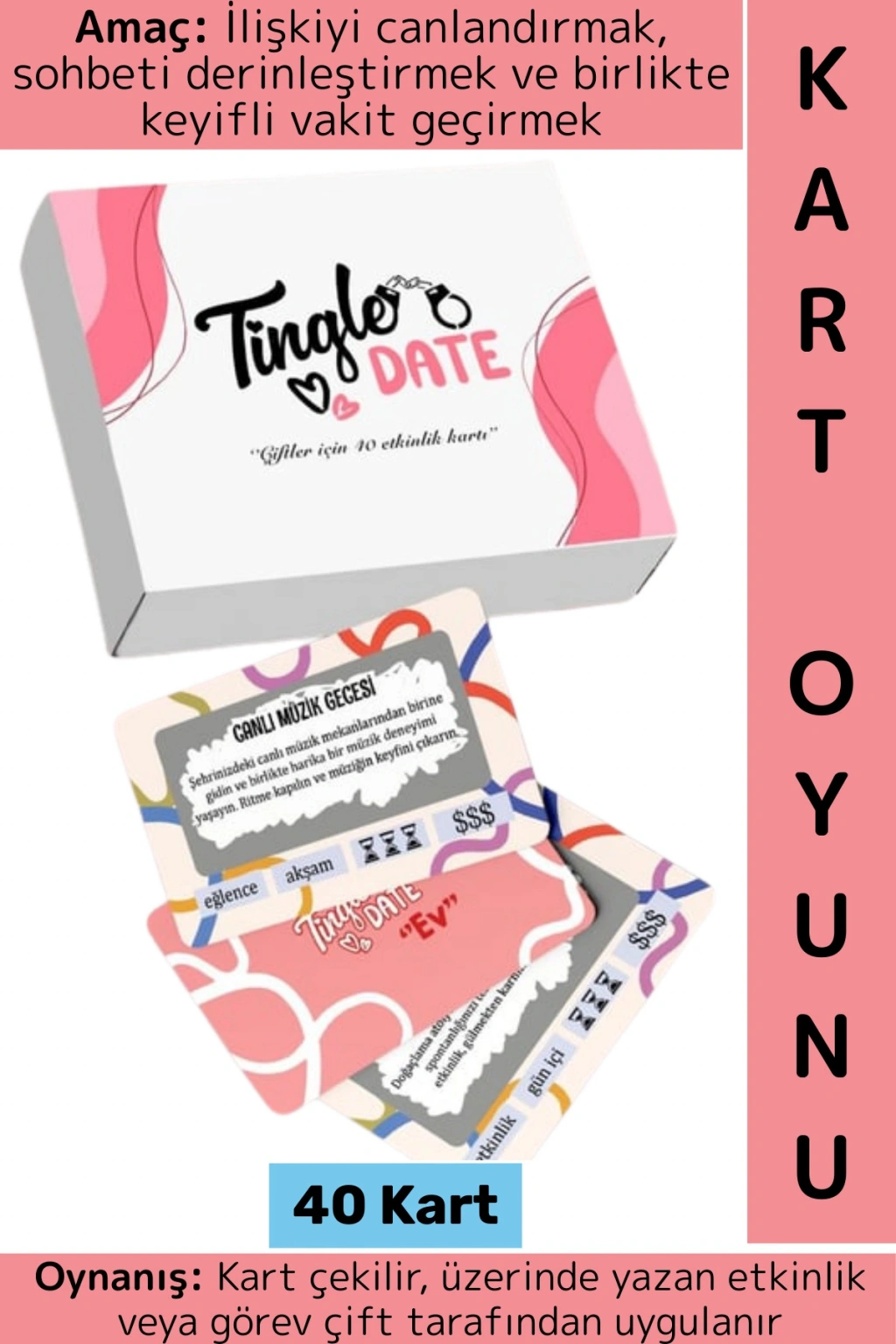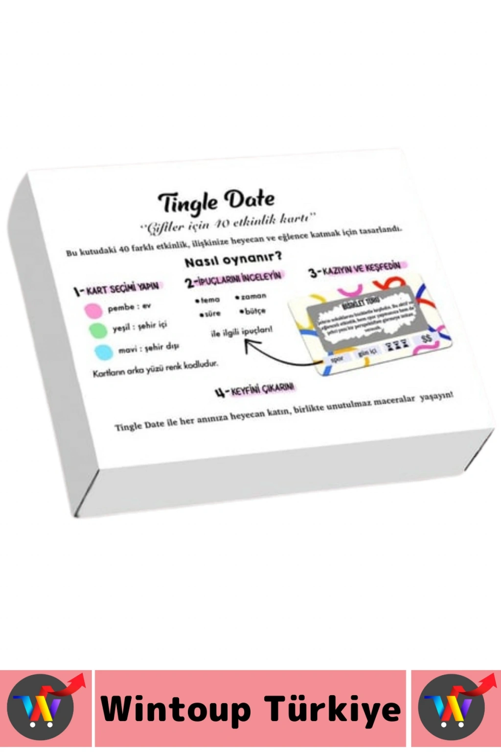 Tingle Date Etkinlik Kart Oyunu, çiftler için özel hazırlanmış bir ilişki ve eğlence oyunudur.