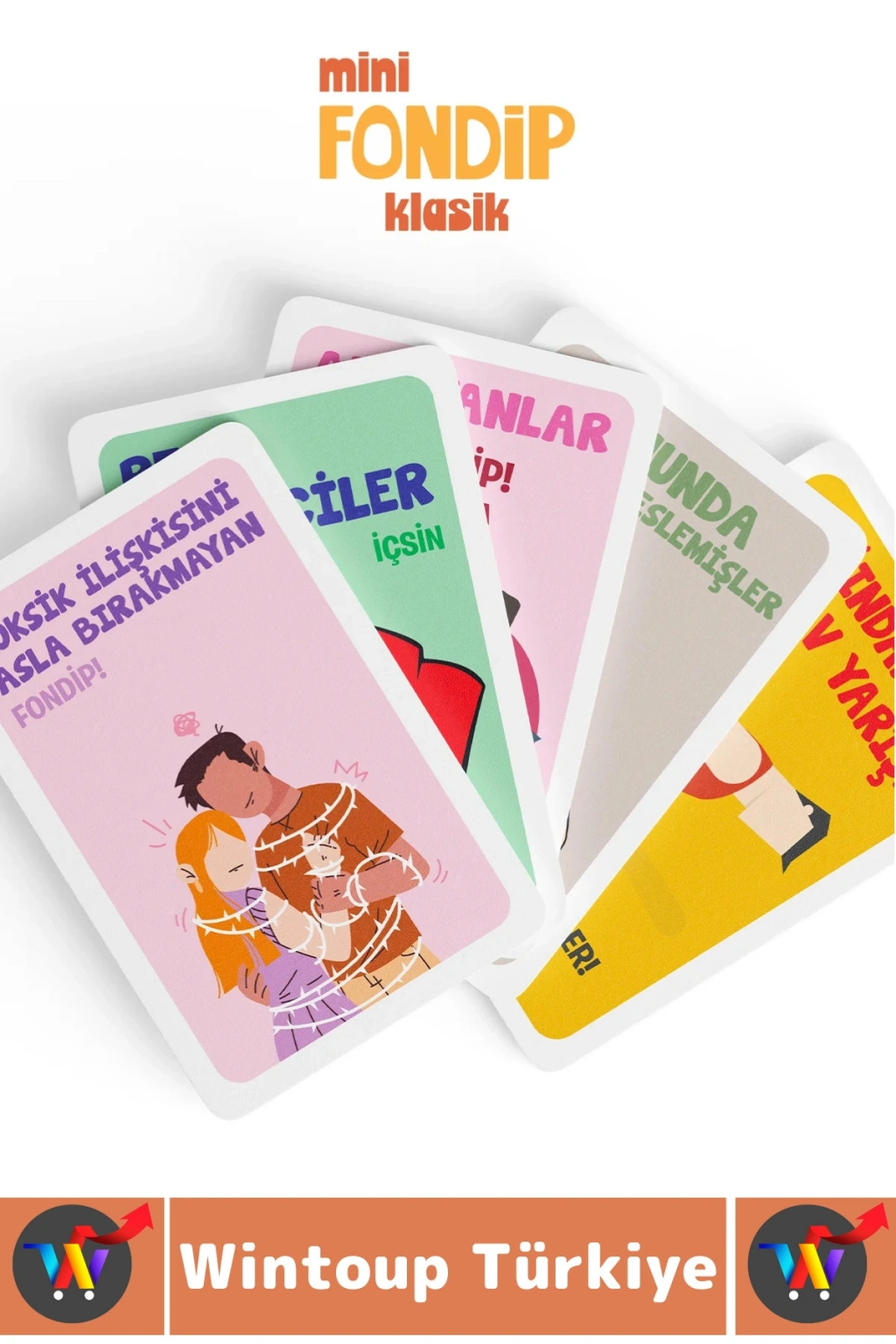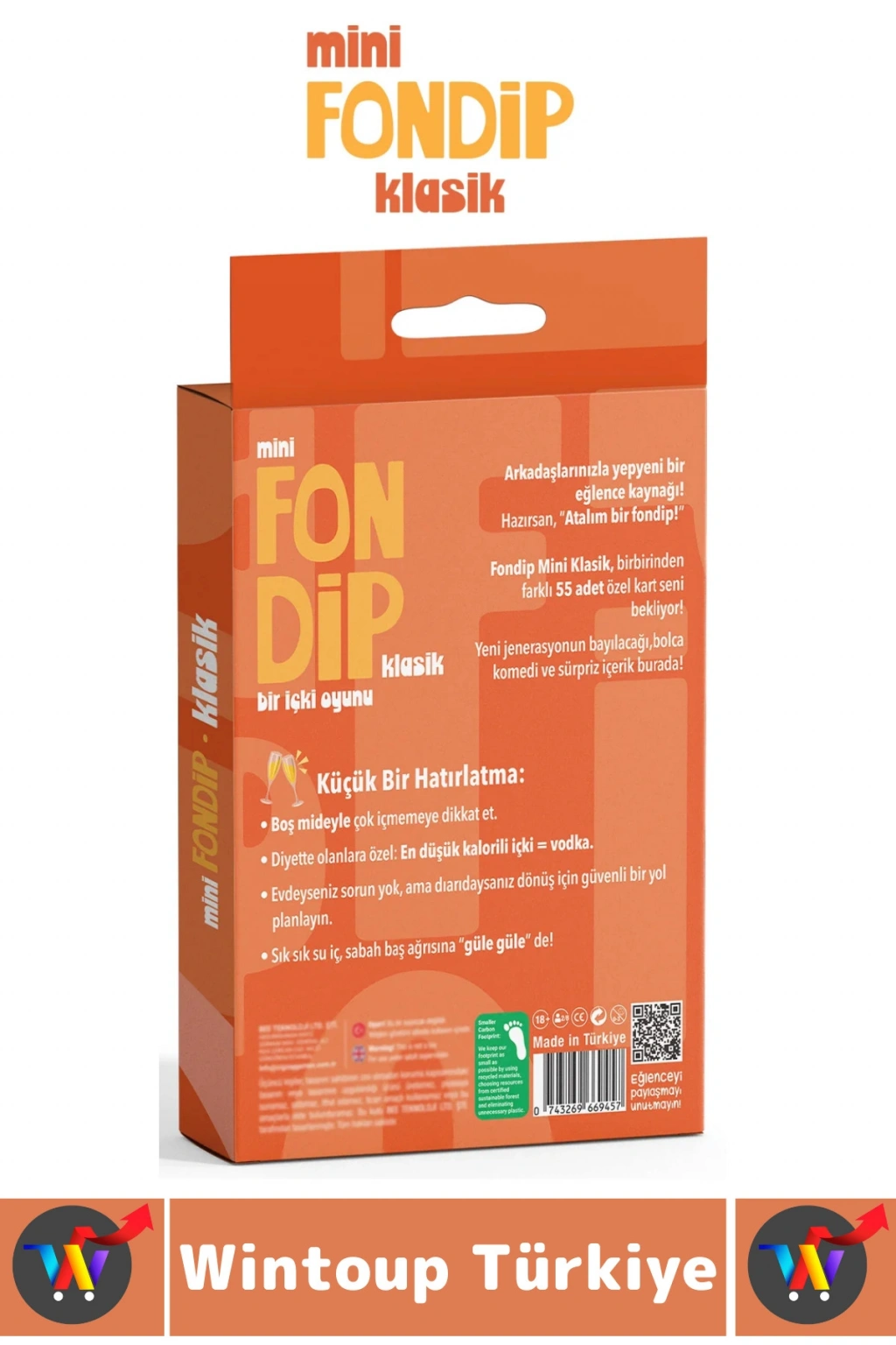 Fondip Mini Klasik oyunu, arkadaş gruplarıyla eğlenceli vakit geçirmek için tasarlanmış bir içki kart oyunudur. 55 karttan oluşur ve her kartta farklı görevler veya kurallar bulunur. Oyuncular sırayla kart çeker, karttaki talimatı uygular ve genellikle içki içme hakkı kazanır. Bu oyun özellikle parti ve sosyal buluşmalar için tercih edilmektedir.