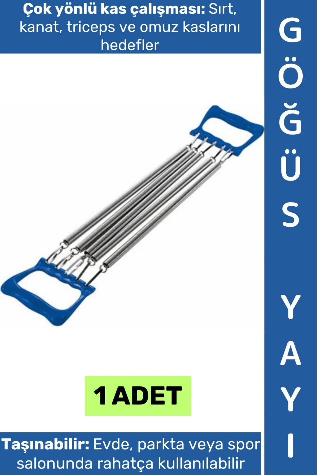 5’li Çelik Göğüs Yayı, evde veya spor salonunda kullanılabilen, özellikle sırt, kanat, triceps ve omuz kaslarını çalıştırmaya yarayan bir kondisyon aletidir. Sadece göğüs kaslarını değil tüm üst vücut kas gruplarını hedefler.