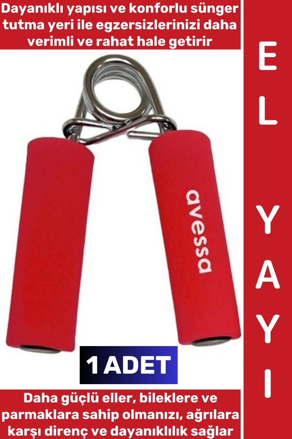 Süngerli El Yayıellerinizi, bileklerinizi ve parmaklarınızı güçlendirmekiçin ideal bir kondisyon aletidir.Dayanıklı yapısıvekonforlu sünger tutma yeriile egzersizlerinizi daha verimli ve rahat hale getirir.