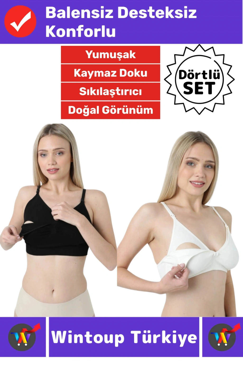 2 Adet Siyah 2 Adet Beyaz Emzirme Sütyeni