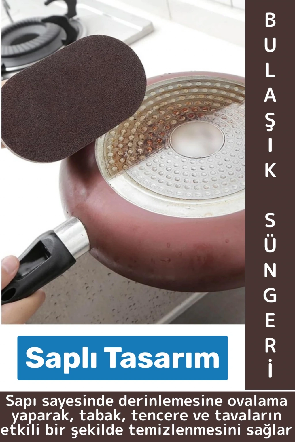 Saplı Bulaşık Süngeri, inatçı ve zorlu lekelerle başa çıkmak için mükemmel bir çözümdür. Sapı sayesinde derinlemesine ovalama yaparak, tabak, tencere ve tavaların etkili bir şekilde temizlenmesini sağlar. Paslanmaz yapısı, hasarlı tencere ve tavaları toparlayarak, uzun ömürlü kullanım sunar. Yağlı ve inatçı lekeleri çıkarma konusunda üstün gösterir, mutfaktaki her türlü kir ve lekeyi kolaylıkla temizler. Bu sünger, günlük temizlik ihtiyaçlarınız için vazgeçilmez bir yardımcıdır.