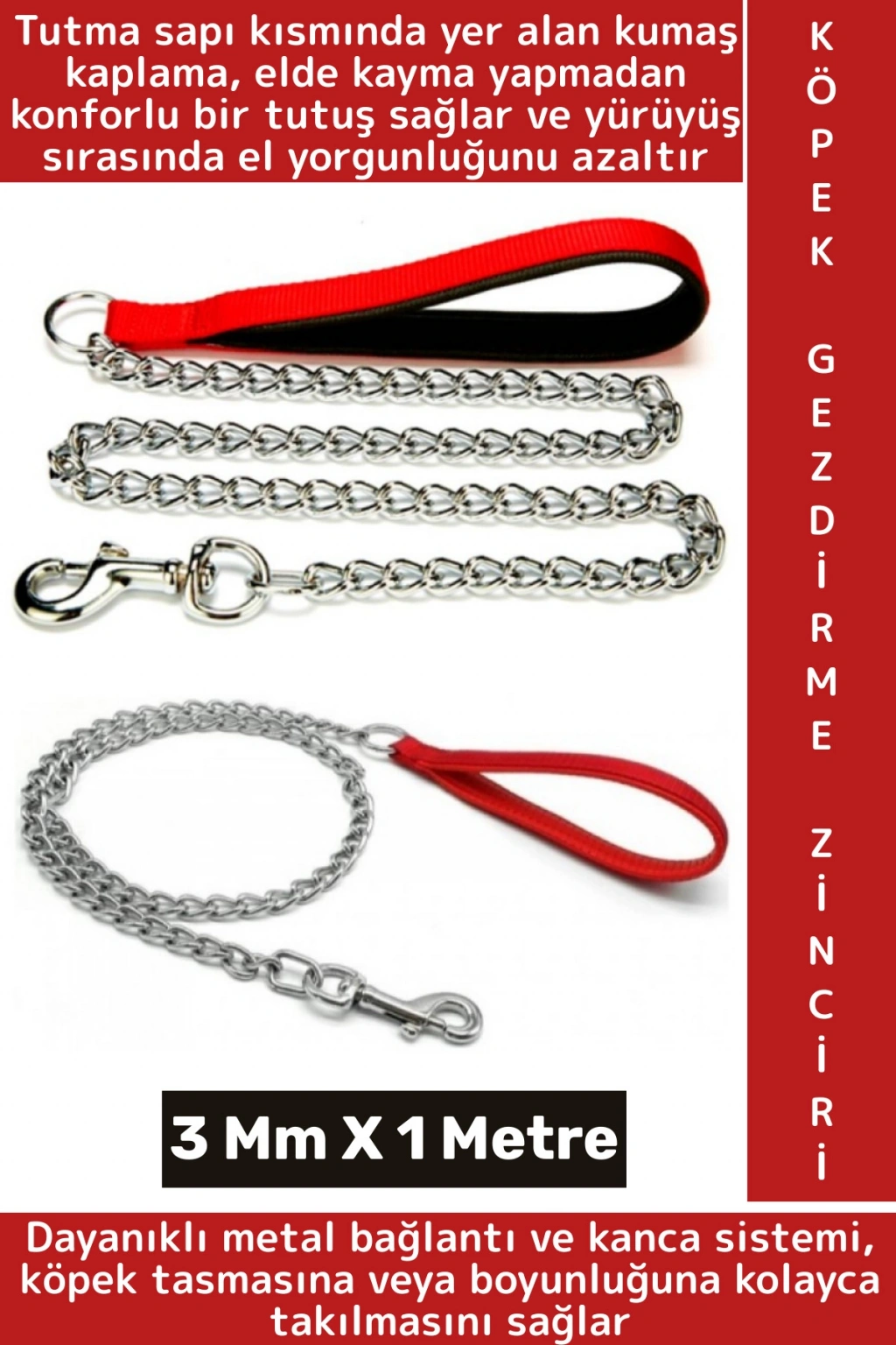 3 mm kalınlığındaki zincir yapısı, küçük ve orta ırk köpekler için ideal bir denge sunarken, 1 metre uzunluğu sayesinde yürüyüş esnasında hem köpeğin rahat hareket etmesine hem de sahibinin kontrolü elinde tutmasına yardımcı olur.
