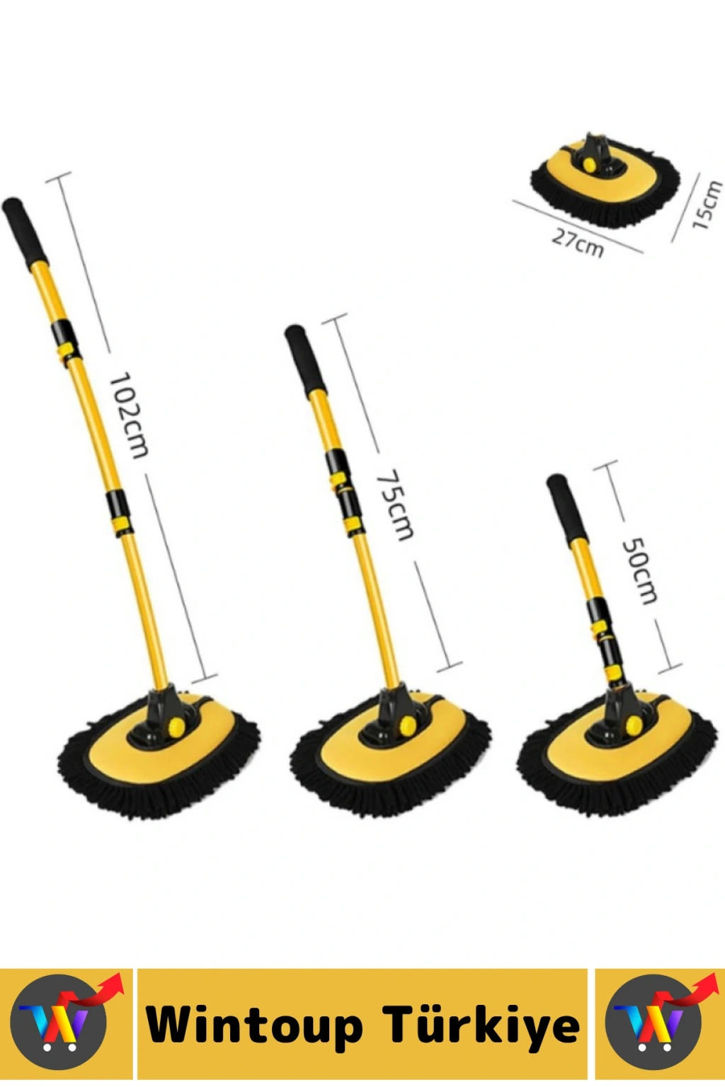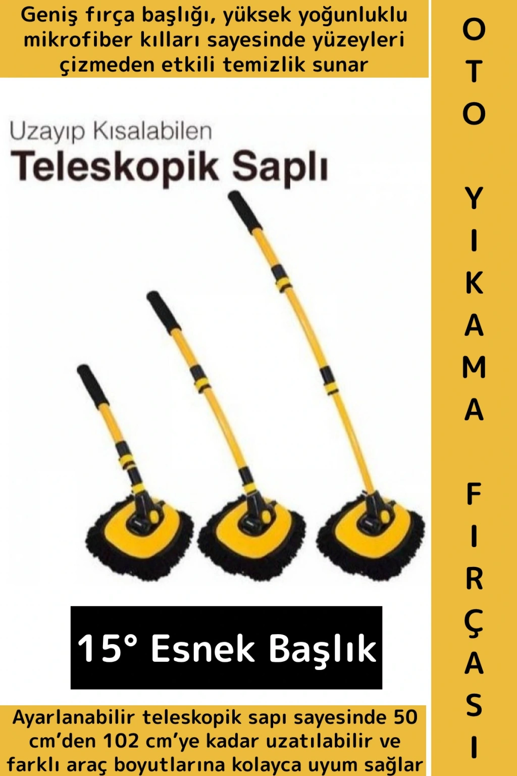 Teleskopik saplı kuru ıslak oto yıkama fırçası, araç temizliğini pratik ve zahmetsiz hale getirmek için tasarlanmıştır.