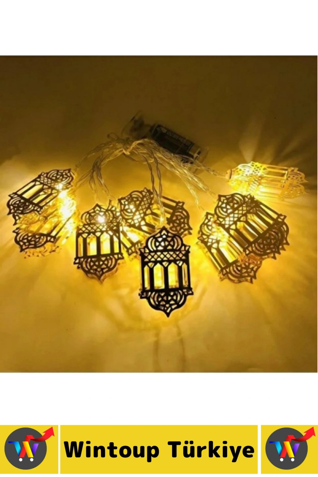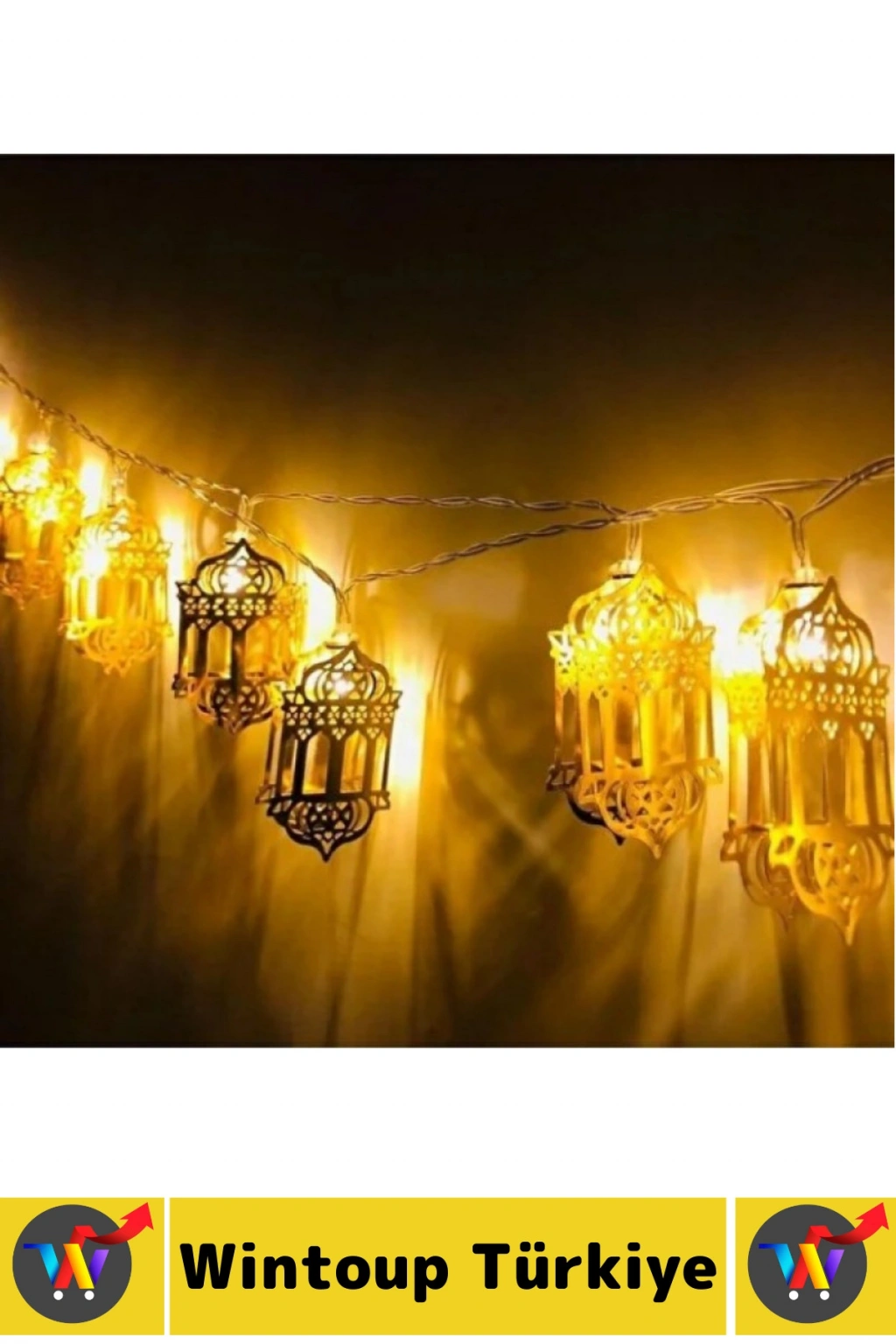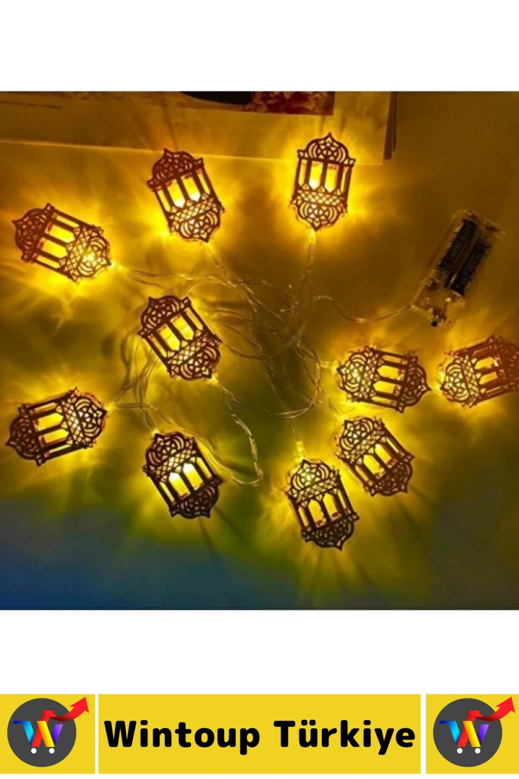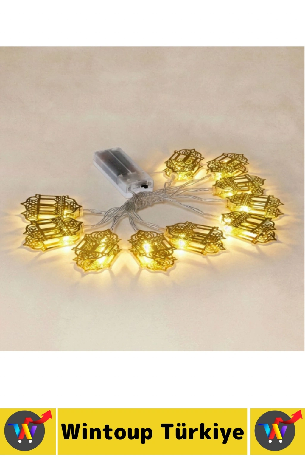 RAMAZAN KANDİLİ MODEL DEKORATİF LED IŞIK 2 METRE GOLD METAL