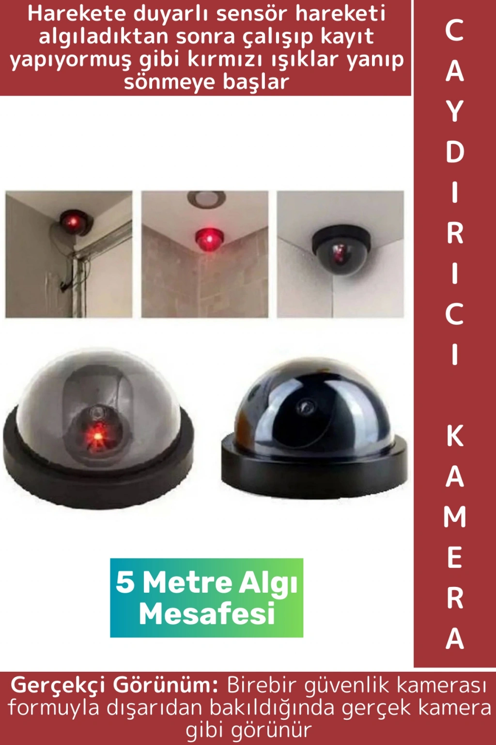 Ev Dükkan Kırmızı Işıklı Hareket Sensörlü 5 Metre Algı Mesafeli Pilli Güvenlik Caydırıcı Dome Kamera